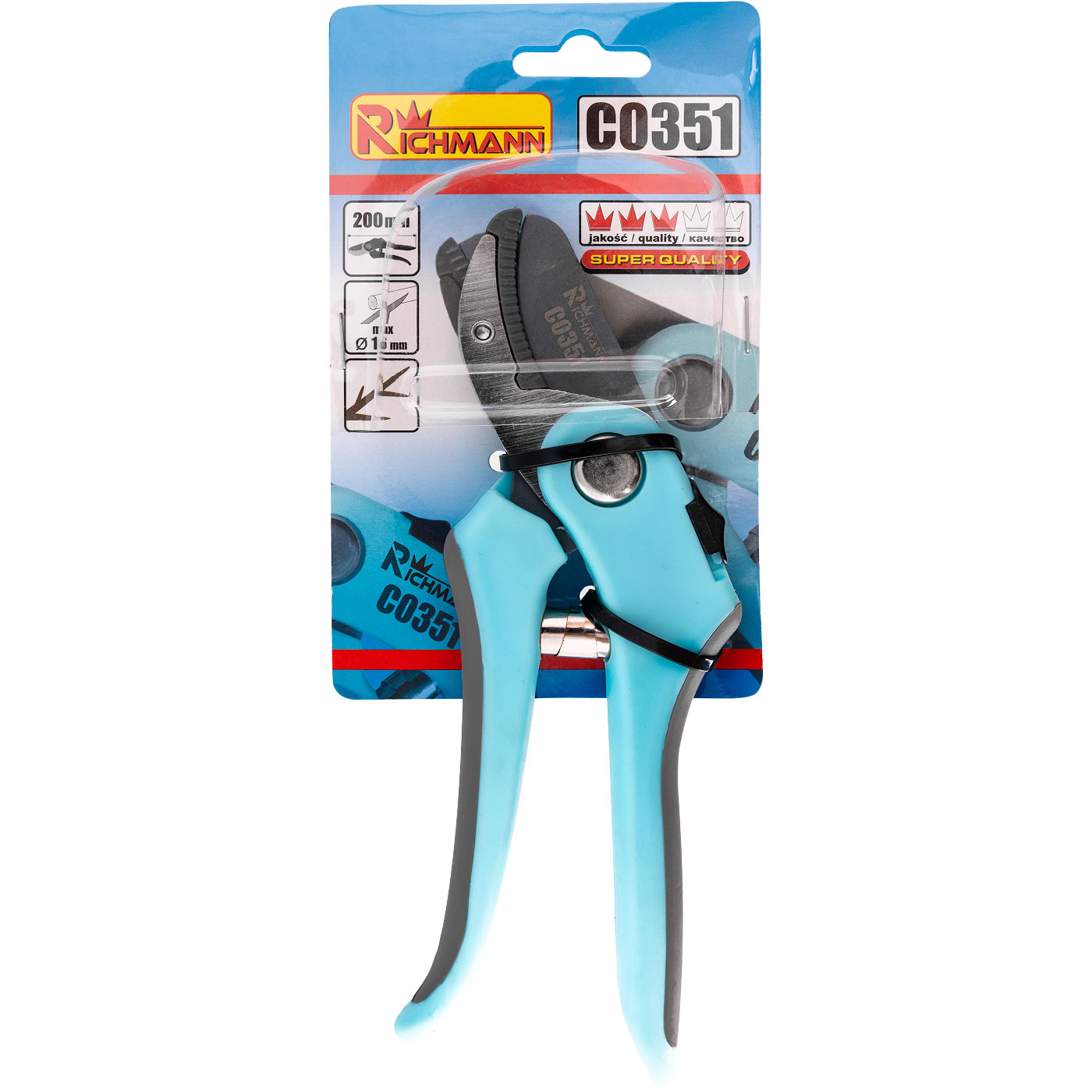 Sekator ogrodowy kowadełkowy o długości 200 mm.