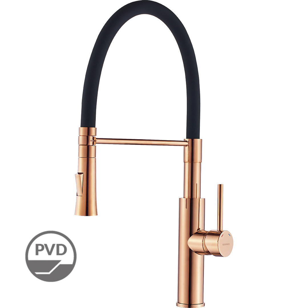 Baterie zlewozmywakowe Shire z ruchomą wylewką oprócz niezawodnej funkcjonalności, charakteryzują się nowoczesnym i eleganckim wyglądem. Baterie wyposażone zostały w głowicę ceramiczną 35 mm oraz elastyczną silikonową wylewkę, która w łatwy sposób pozwala na skierowanie strumienia wody w dowolne miejsce zlewu bądź naczynia. Baterie z serii Shire szczególnie sprawdzą się w kuchniach często eksploatowanych, w których brak zmywarki zmusza do częstszego zmywania czy np. opłukania warzyw. Dwa strumienie ( stały i deszczowy ) w jakie wyposażona jest bateria ułatwiają mycie i przyczyniają się do lepszego komfortu pracy. Baterie zlewozmywakowe z wylewką „U” dostępne są w ciekawych wersjach kolorystycznych tj. całej czarnej, chromie, różowym złocie z czarną wylewką oraz złocie z białą wylewką. Nowoczesny design to podstawowa cecha charakteryzująca baterie Shire.
