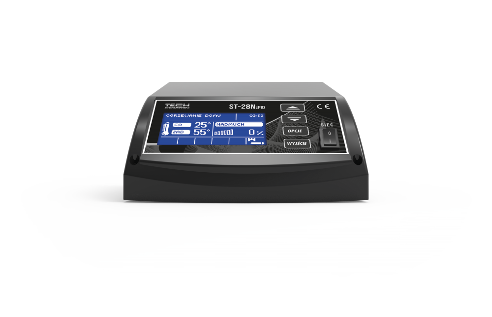 Sterownik do kotła zasypowego Regulator temperatury ST–28N zPID przeznaczony jest do zasypowych kotłów CO. Steruje pompą obiegu wody CO, pompą ciepłej wody użytkowej CWU oraz wentylatorem. Obudowa sterownika dostosowana jest do montażu na kotle. Funkcje realizowane przez sterownik: automatyczne sterowanie wentylatorem sterowanie pompą CO sterowanie pompą CWU oprogramowanie zPID Wyposażenie sterownika: wyświetlacz LCD czujnik temperatury CO czujnik temperatury CWU czujnik temperatury wylotu spalin zabezpieczenie temperaturowe (termik) obudowa sterownika dostosowana jest do montażu na kotle Opis funkcji i wyposażenia sterowników aktualny tylko i wyłącznie z produktami dostępnymi w danym roku kalendarzowym. W celu potwierdzenia posiadanych możliwości danego sprzętu należy kontaktować się z działem techniczno-serwisowym firmy TECH STEROWNIKI. TECH STEROWNIKI Spółka z ograniczona odpowiedzialnością Sp. k. zastrzega sobie prawo wprowadzania bez uprzedzenia zmian parametrów technicznych, wyposażenia i specyfikacji oferowanych towarów. Zawarte na stronie wszelkie informacje, w szczególności zaprezentowane fotografie, specyfikacje, opisy, rysunki lub parametry techniczne nie stanowią zapewnienia w rozumieniu art. 4 ust. 3 i 4 Ustawy z dnia 27 lipca 2002 roku o szczególnych warunkach sprzedaży konsumenckiej oraz o zmianie Kodeksu Cywilnego (dalej „Ustawa”), a także nie stanowią opisu towaru w rozumieniu art. 4 ust. 2 Ustawy. Niniejsza strona nie stanowi oferty w rozumieniu art. 66 Kodeksu Cywilnego.