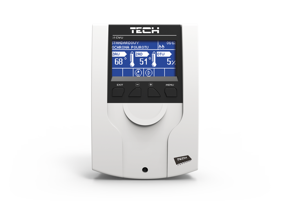 Sterownik zaworu mieszającego Funkcje realizowane przez sterownik płynne sterowanie zaworem trój lub czterodrogowym sterowanie pracą pompy zaworu sterowanie pracą pompy zbiornika CWU styk beznapięciowy do uruchamiania urządzenia grzewczego możliwość podłączenia modułu ST-505 lub WIFI RS - zarządzanie poprzez eModul zabezpieczenie temperatury powrotu sterowanie pogodowe i tygodniowe współpraca z regulatorem pokojowym z komunikacją RS lub dwustanową Wyposażenie sterownika wyświetlacz LCD czujnik temperatury kotła czujnik temperatury zaworu czujnik temperatury CWU czujnik temperatury powrotu czujnik pogodowy zewnętrzny obudowa przystosowana do montażu na ścianie Podgląd aplikacji po zainstalowaniu dodatkowego modułu internetowego Opis funkcji i wyposażenia sterowników aktualny tylko i wyłącznie z produktami dostępnymi w danym roku kalendarzowym. W celu potwierdzenia posiadanych możliwości danego sprzętu należy kontaktować się z działem techniczno-serwisowym firmy TECH STEROWNIKI. TECH STEROWNIKI Spółka z ograniczona odpowiedzialnością Sp. k. zastrzega sobie prawo wprowadzania bez uprzedzenia zmian parametrów technicznych, wyposażenia i specyfikacji oferowanych towarów. Zawarte na stronie wszelkie informacje, w szczególności zaprezentowane fotografie, specyfikacje, opisy, rysunki lub parametry techniczne nie stanowią zapewnienia w rozumieniu art. 4 ust. 3 i 4 Ustawy z dnia 27 lipca 2002 roku o szczególnych warunkach sprzedaży konsumenckiej oraz o zmianie Kodeksu Cywilnego (dalej „Ustawa”), a także nie stanowią opisu towaru w rozumieniu art. 4 ust. 2 Ustawy. Niniejsza strona nie stanowi oferty w rozumieniu art. 66 Kodeksu Cywilnego.