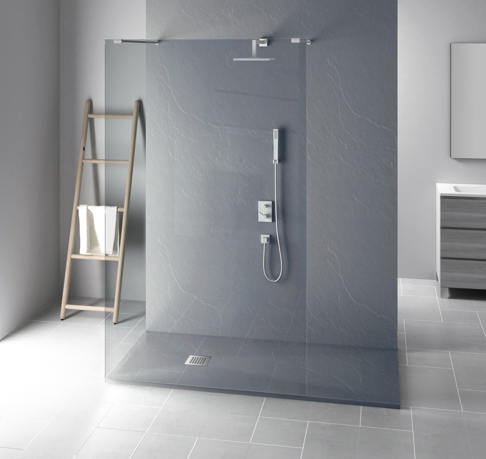 BRODZIK STONE-TRAY w kolorze DARK GREY o delikatnej fakturze kamienia łupkowego stanowi niezwykle nowoczesne i praktyczne rozwiązanie do każdej łazienki. Idealnie komponuje się z naturalnymi materiałami, takimi jak drewno, stal.