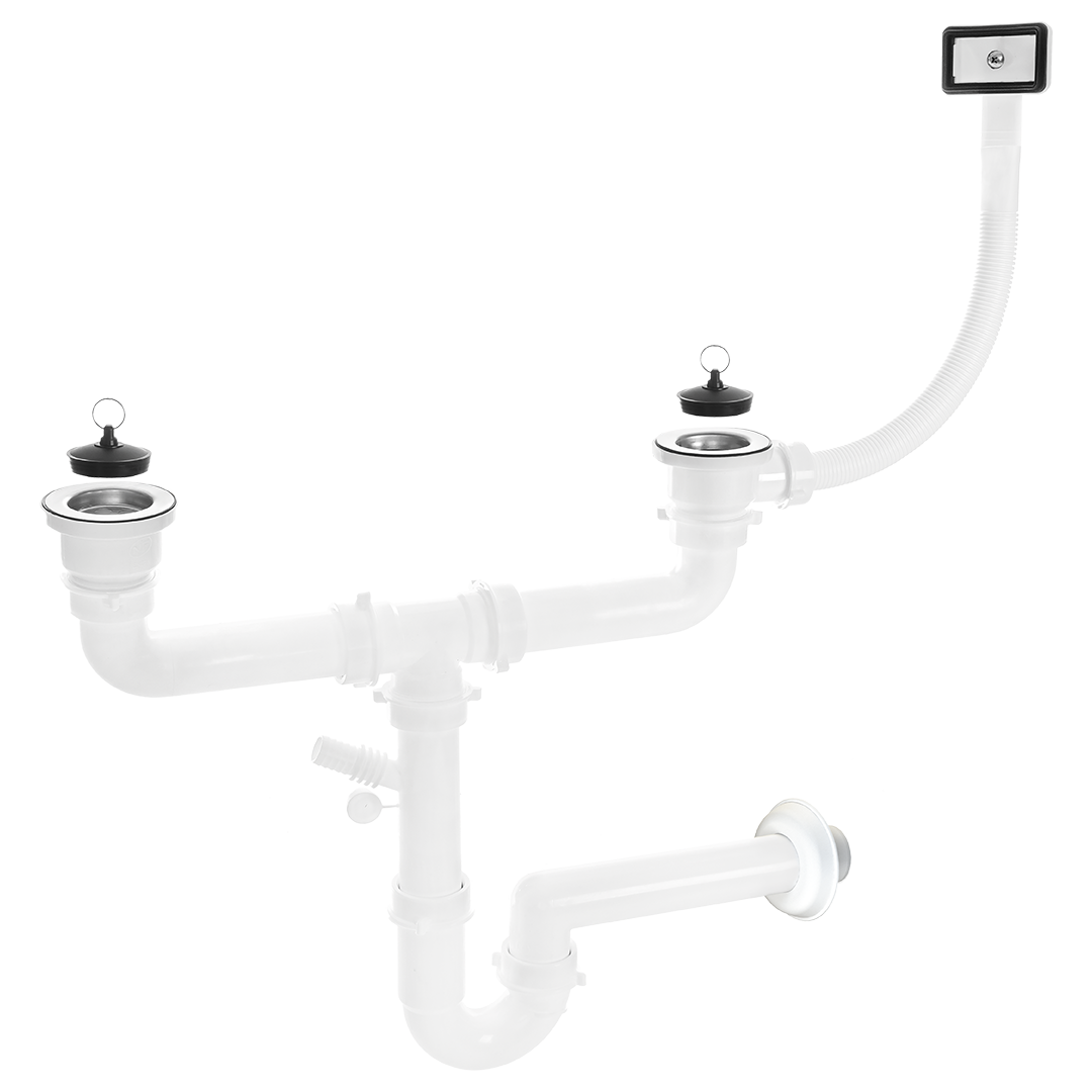 Syfon 2x2" z przelewem do zlewozmywaka 2-komorowego