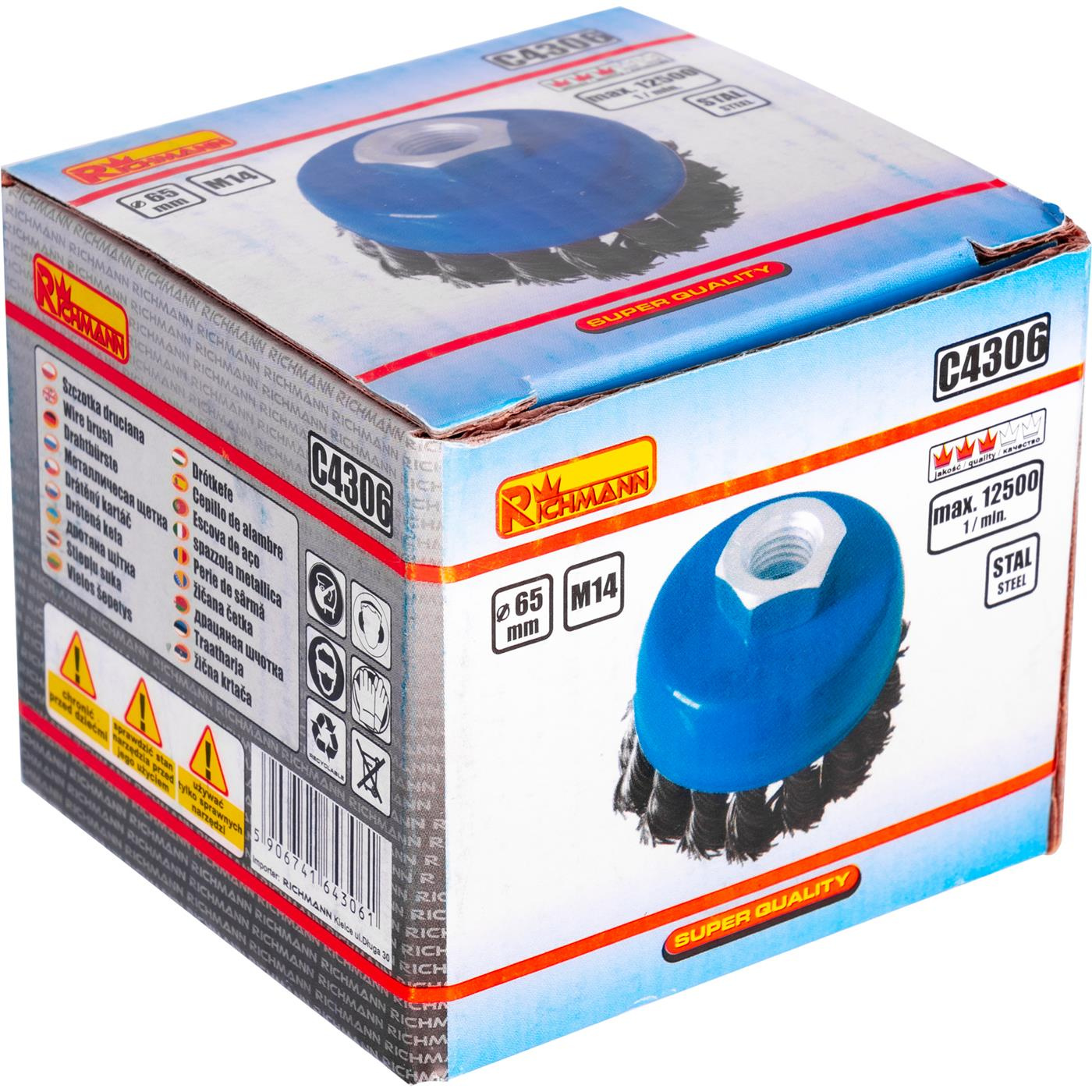 Szczotka druciana doczołowa o średnicy 65 mm do szlifierki kątowej 125 mm, uchwyt M14.