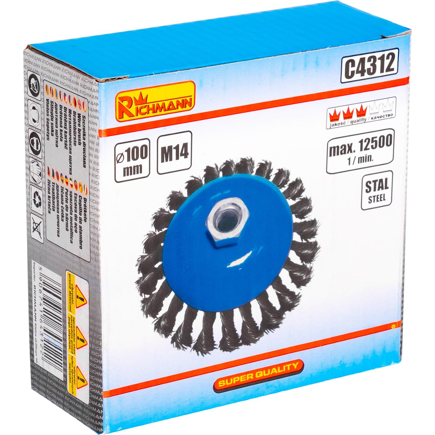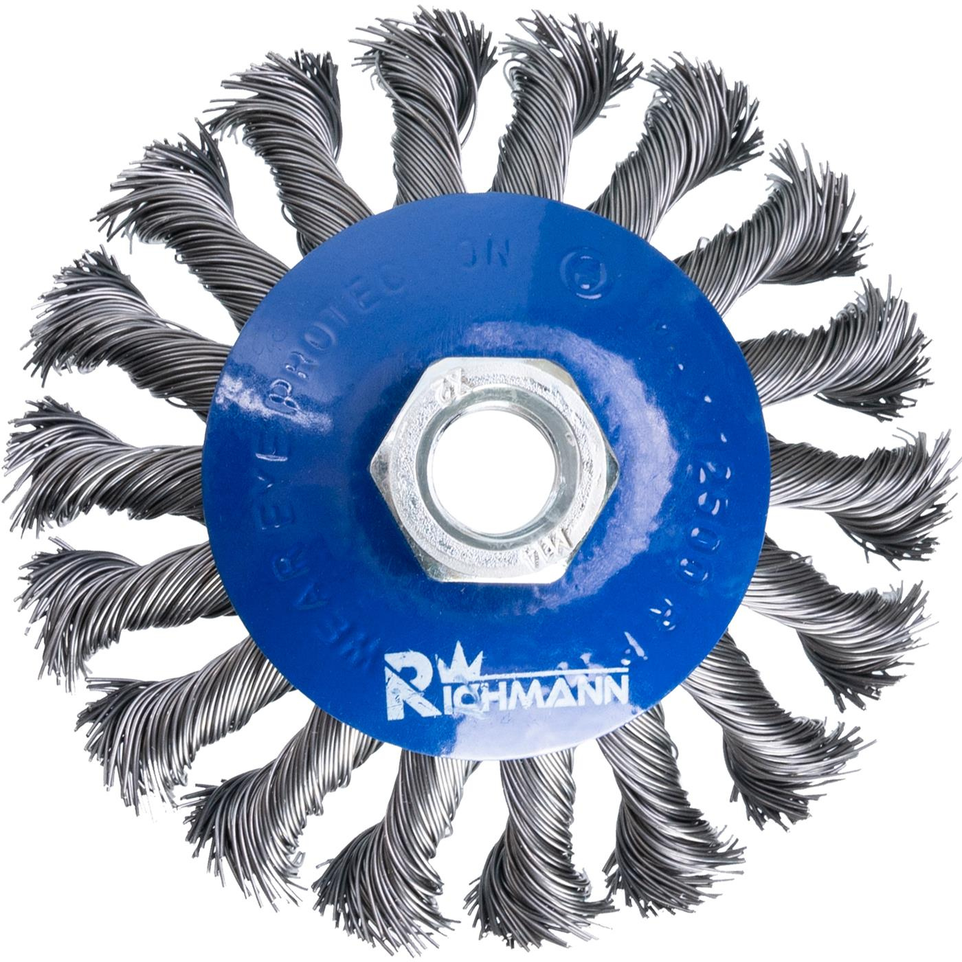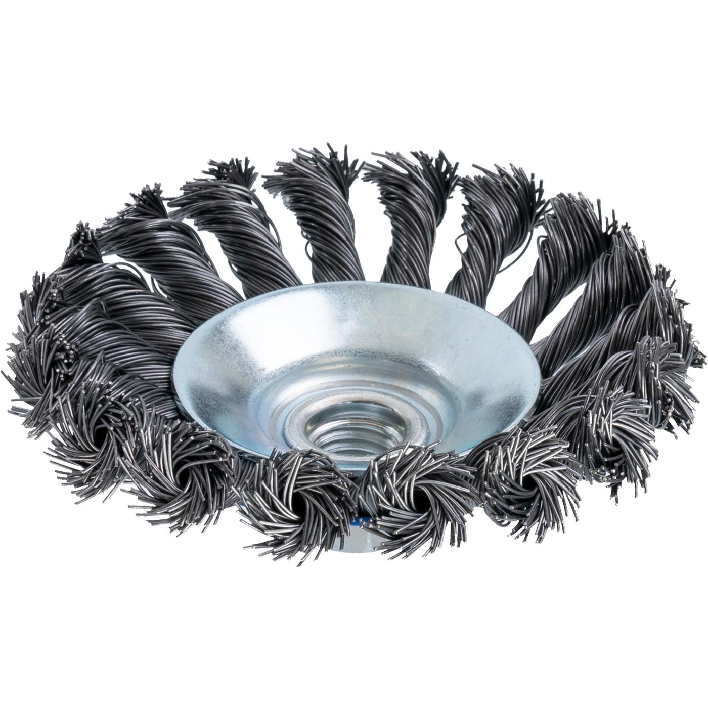 Szczotka druciana stożkowa o średnicy 100 mm do szlifierki kątowej 125 mm, uchwyt M14.