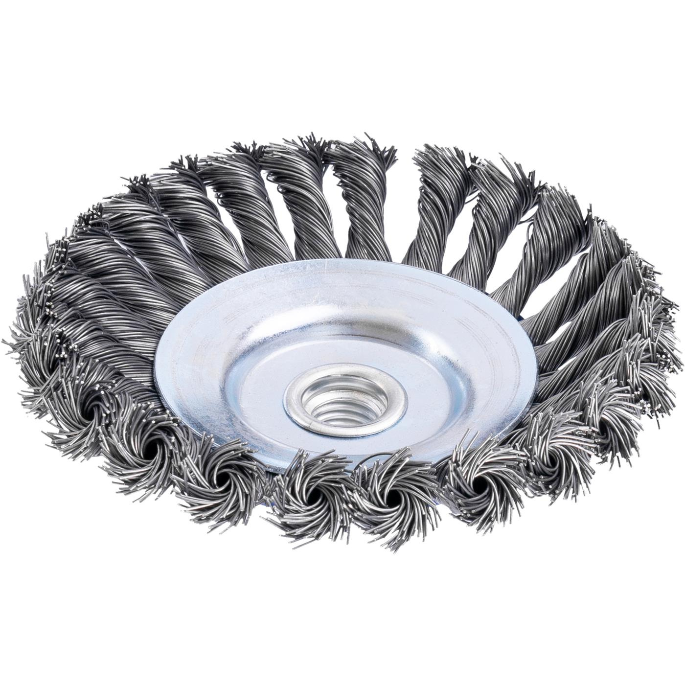 Szczotka druciana stożkowa o średnicy 125 mm do szlifierki kątowej 125 mm, uchwyt M14.