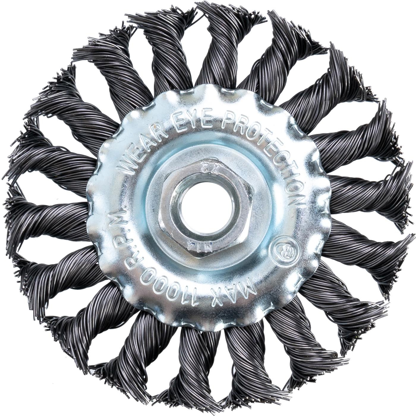 Szczotka druciana boczna o średnicy 100 mm do szlifierki kątowej 125 mm, uchwyt M14.