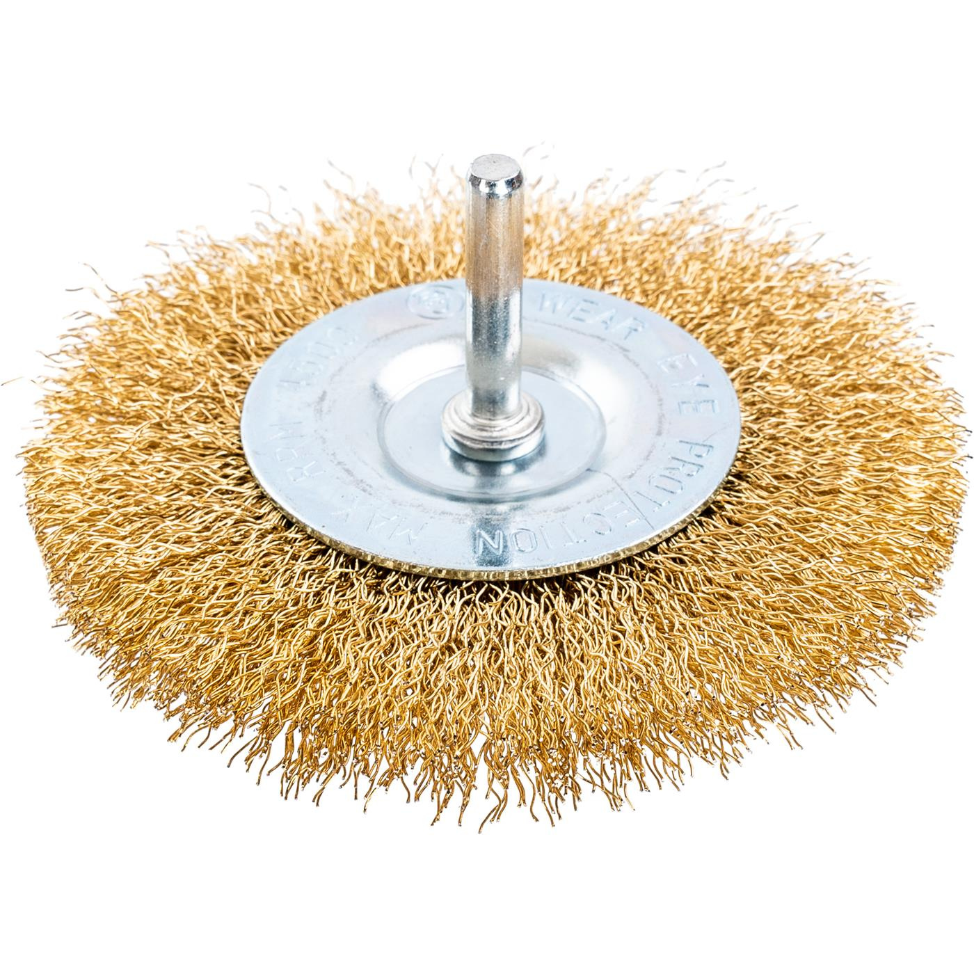 Szczotka druciana tarczowa o średnicy 100 mm do wiertarki.