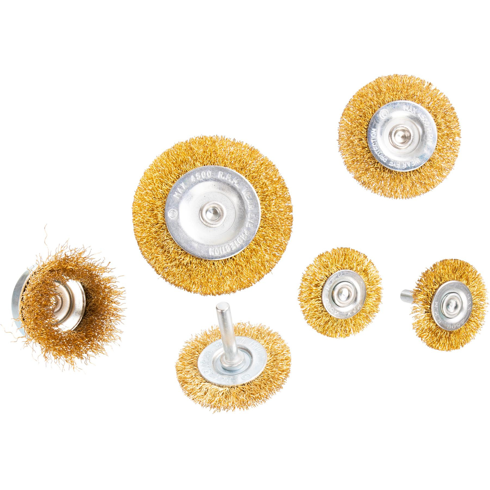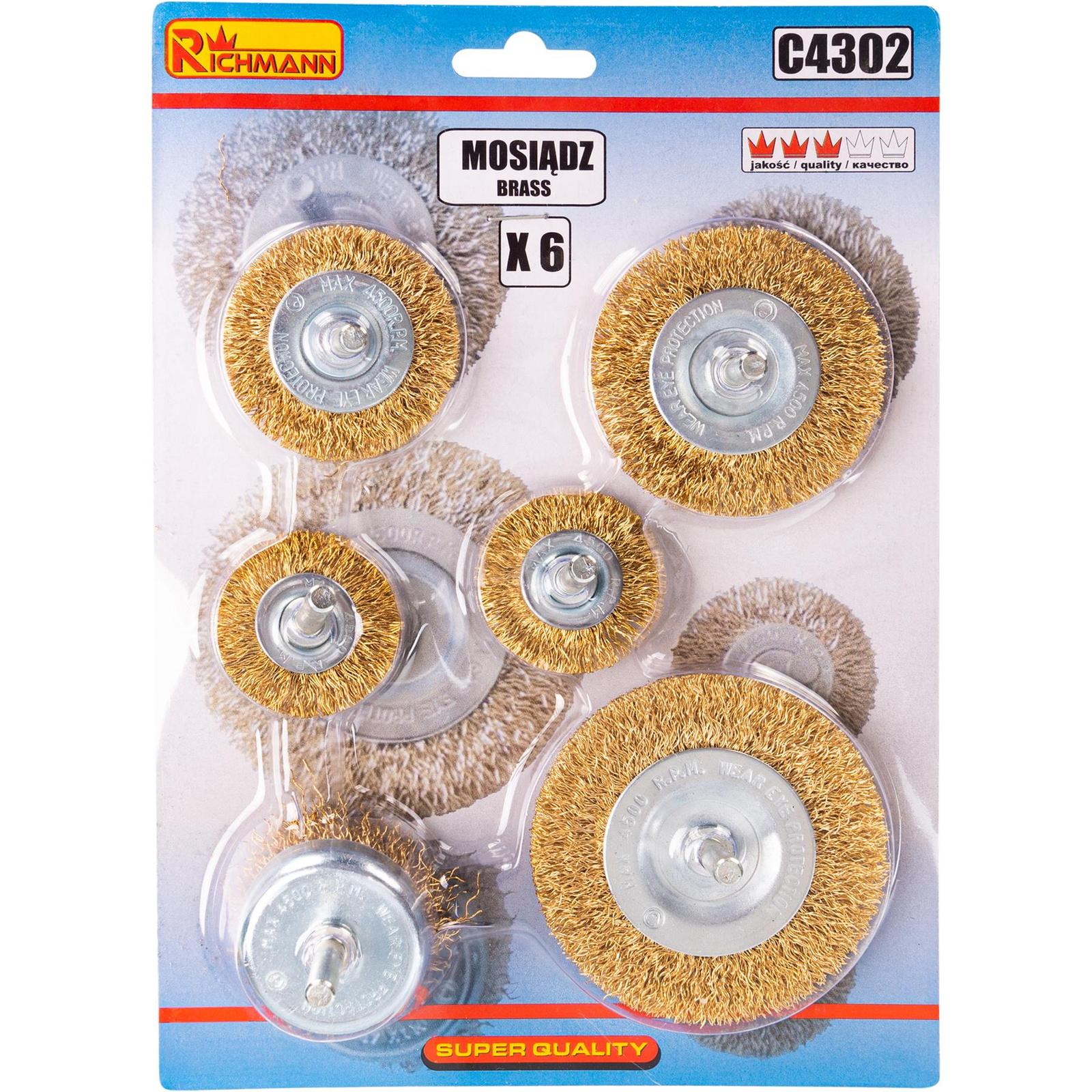 Zestaw 6 szt. szczotek drucianych mosiężnych do wiertarki.