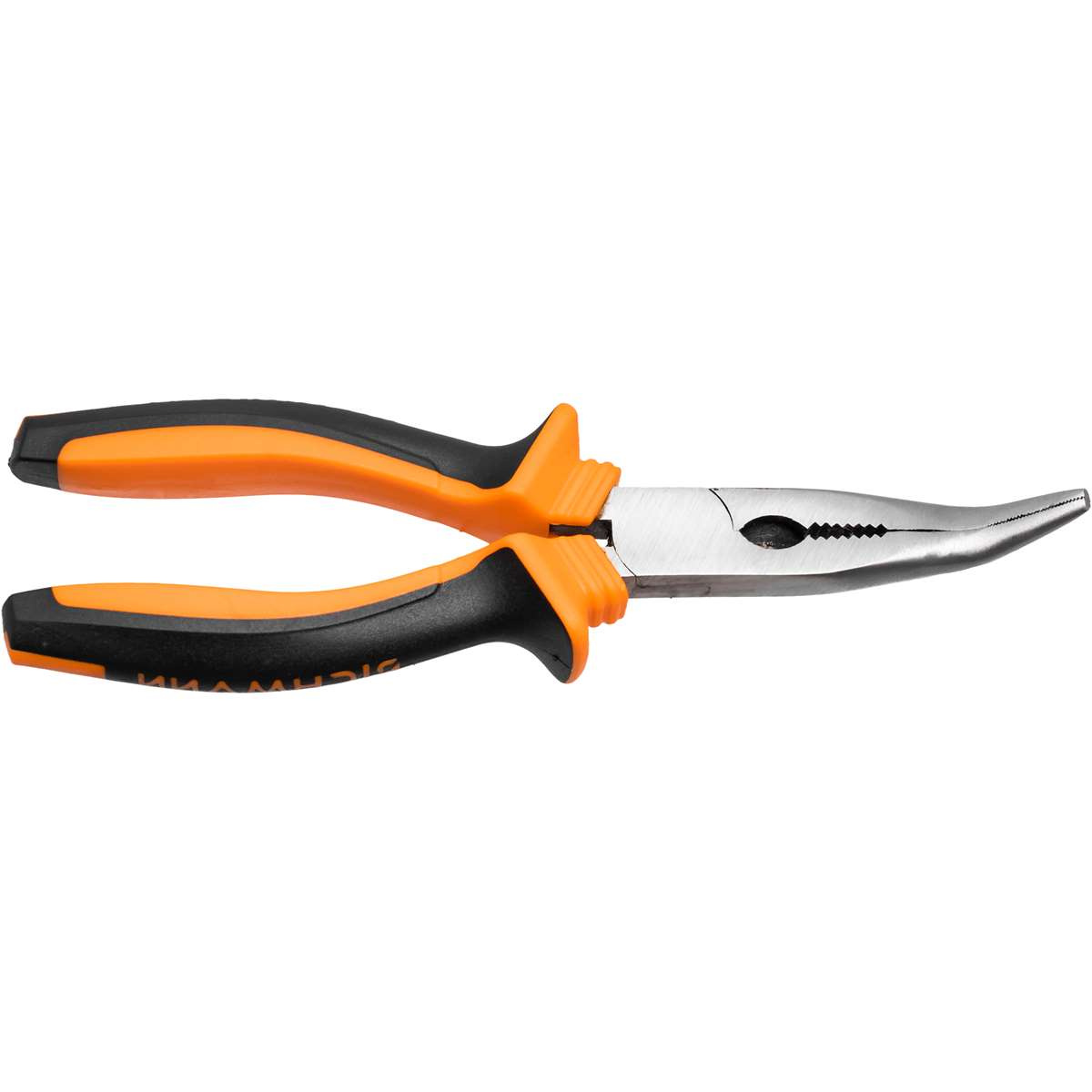 Szczypce półokrągłe wygięte o długości całkowitej 200 mm.