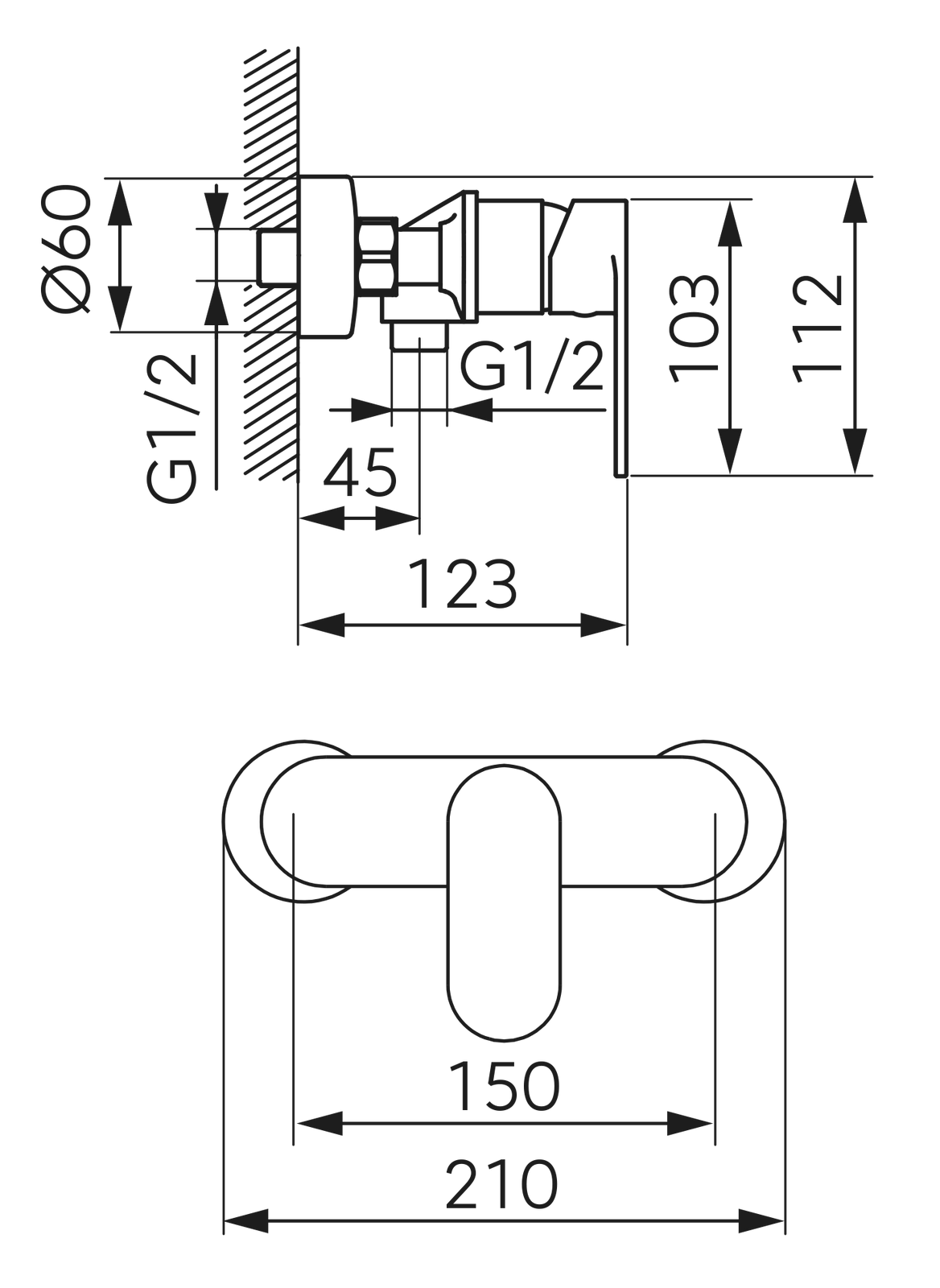 Bateria natryskowa naścienna, bez zestawu natryskowego