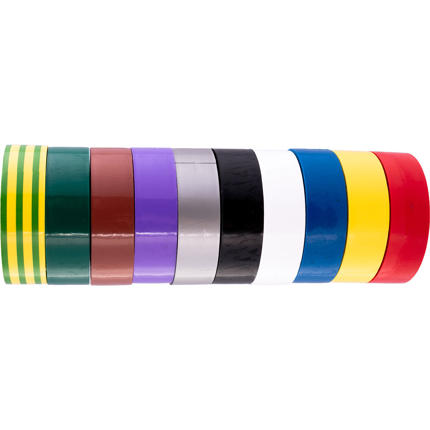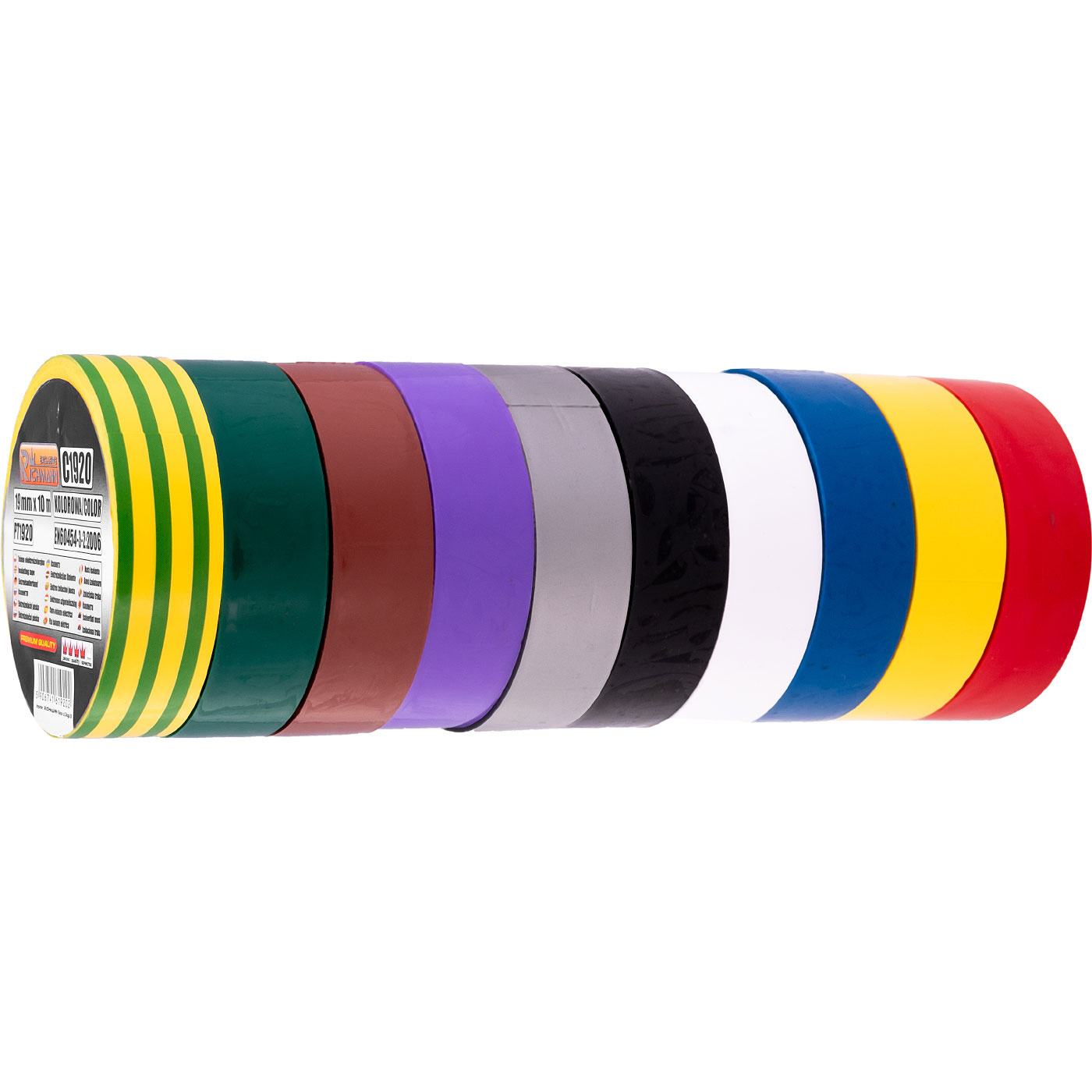 Zestaw 10 szt. taśm elektroizolacyjnych wielokolorowych o wymiarach 19 mm x 10 m.