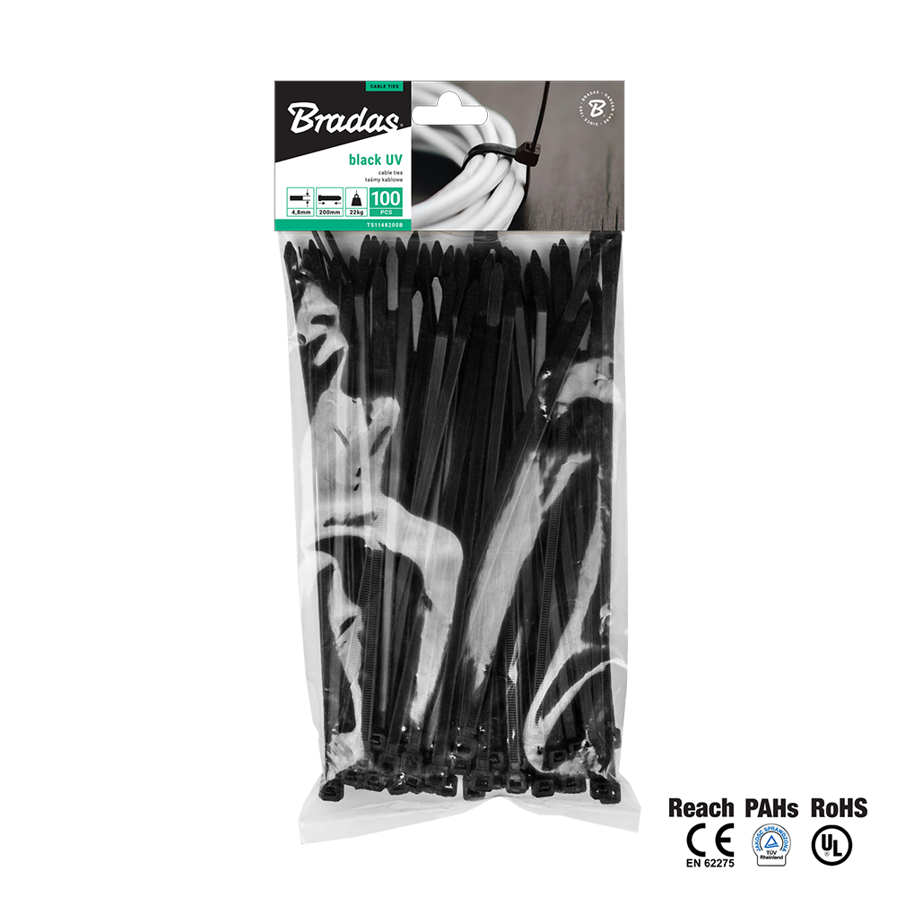 Taśma kablowa 2,5 x 150mm UV BLACK 100szt.