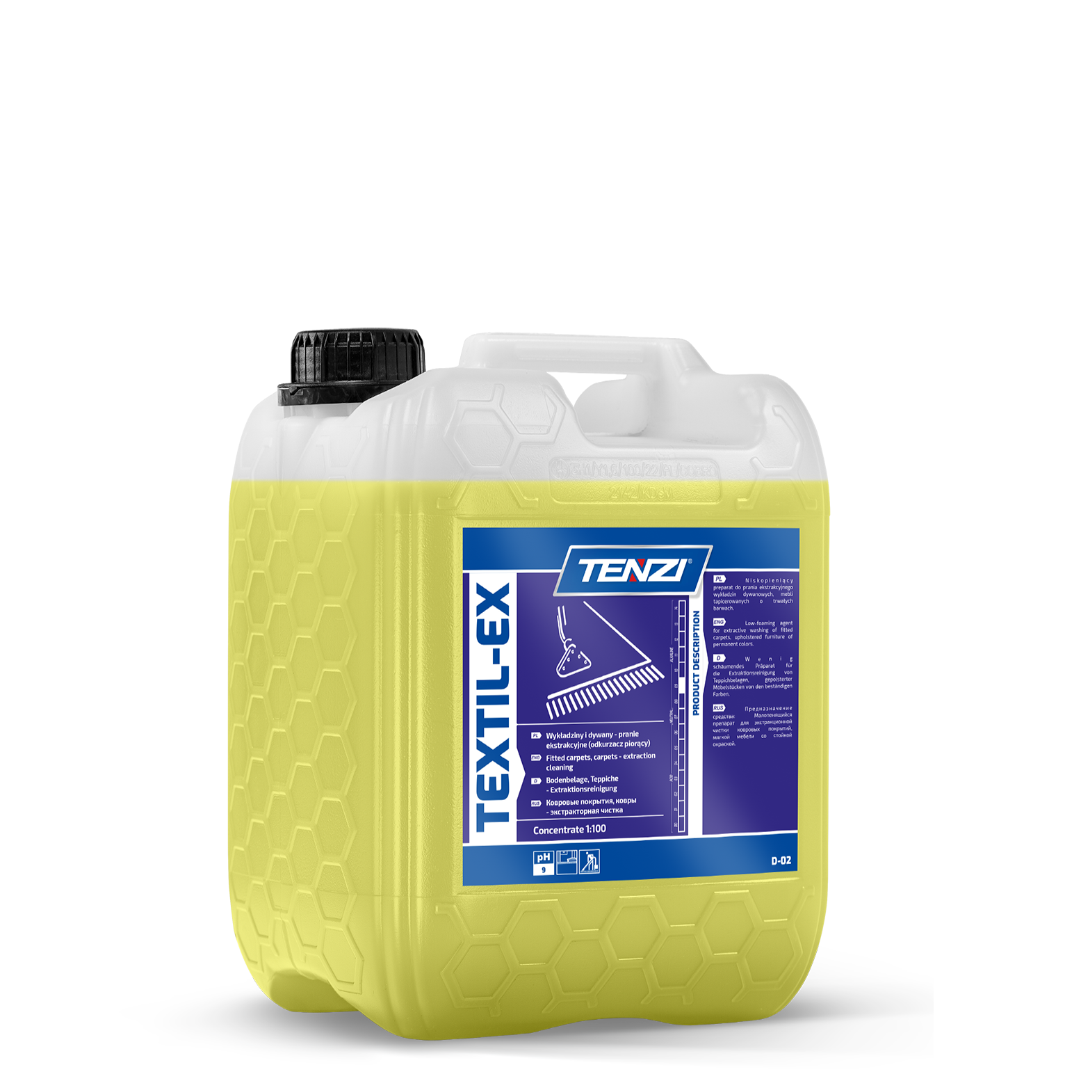 Produkt piorący do metody ekstrakcyjnej. Nie zawiera wybielaczy optycznych oraz rozpuszczalników. Niskopieniący. Neutralne pH w roztworze. Głęboko penetruje strukturę włókna. Posiada przyjemny zapach, nie krystalizuje się. Przeznaczony do każdego rodzaju powierzchni tekstylnych o trwałych barwach. Odessanie brudu oraz wypłukanie odkurzaczem piorącym znacznie utrudnia proces ponownego brudzenia.