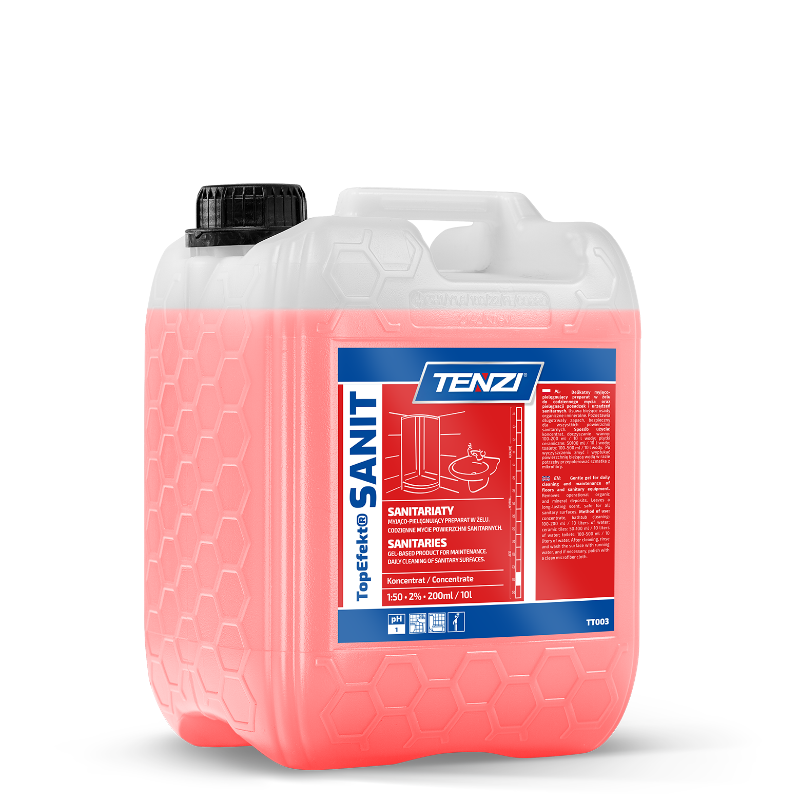 Delikatny, kwaśny, myjąco-pielęgnujący preparat w żelu do codziennego mycia sanitariatów. Skutecznie usuwa bieżące zanieczyszczenia pochodzenia nieorganicznego: resztki mydeł, osady mineralne, nacieki po twardej wodzie. Pozostawia długotrwały, świeży, kwiatowy zapach. Delikatny – nie uszkadza mytych powierzchni, nadaje połysk. Zalecany do mycia powierzchni ze stali nierdzewnej, emalii, ceramiki, szkła oraz z chromu, niklu i metali kolorowych. Działa zapobiegawczo. Zawiera kwas cytrynowy.