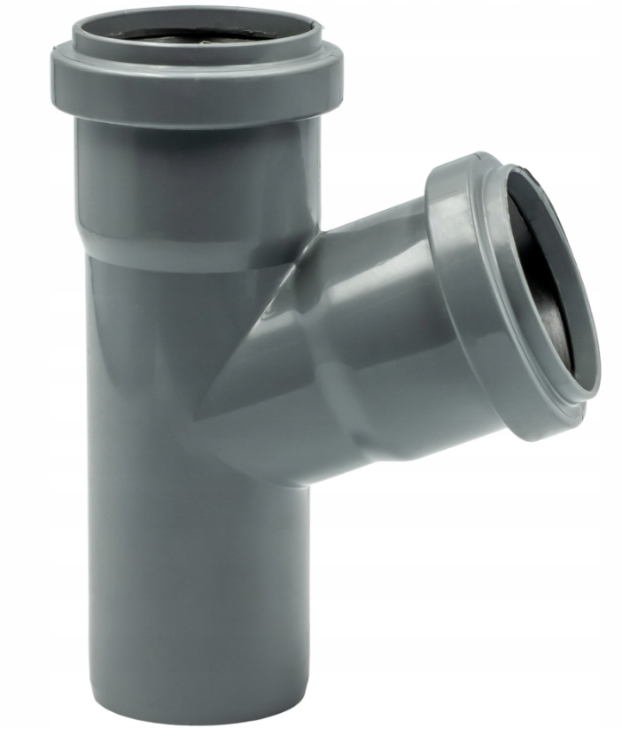 - Trójnik kanalizacyjny PP PCV szary 50/50 - 67° do instalacji kanalizacyjnych