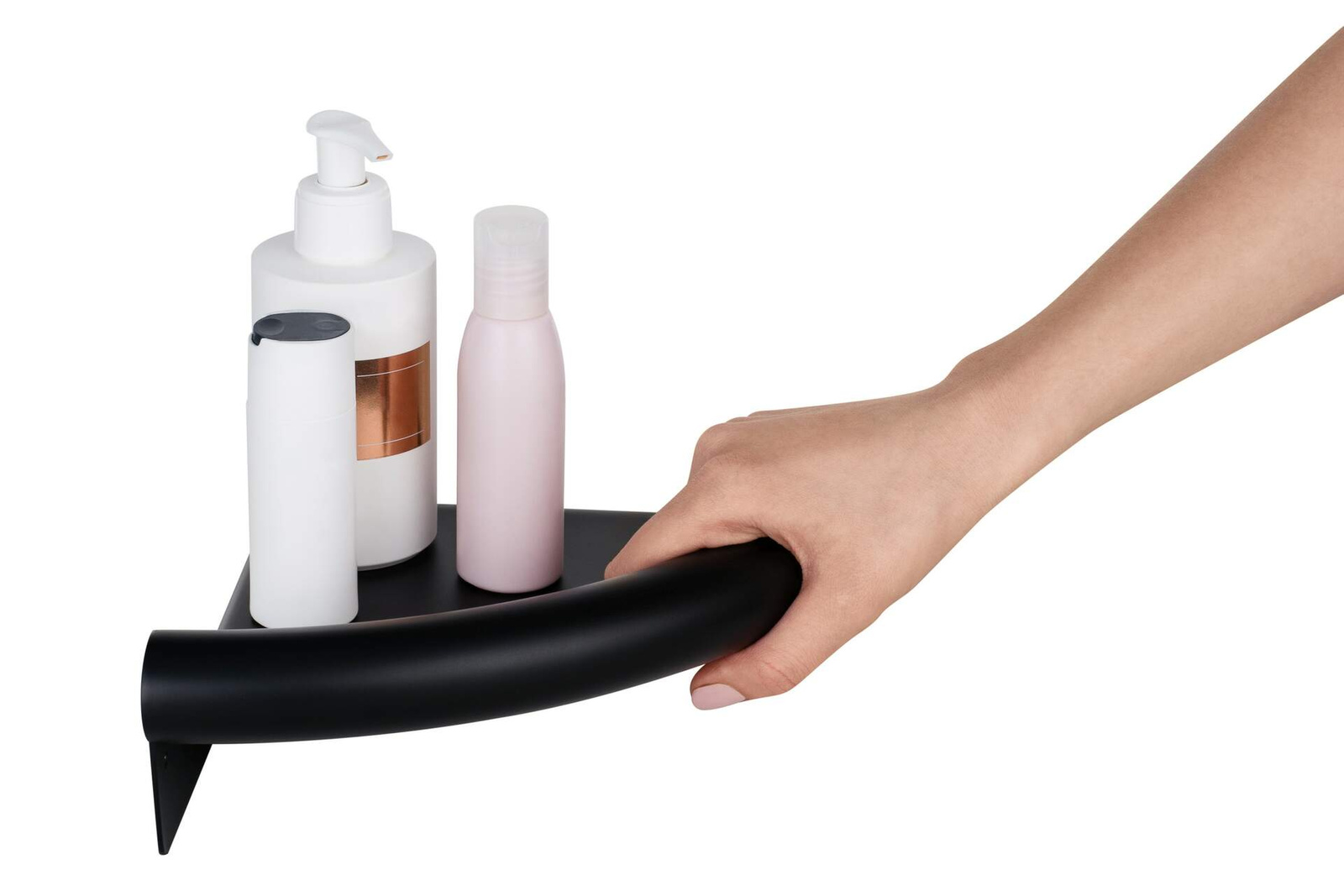 Uchwyt narożny pozwala zachować bezpieczeństwo w czasie kąpieli. Mokra wanna, brodzik czy płytki mogą być śliskie i spowodować utratę równowagi, a produkt uchroni przed upadkiem. Uchwyt prysznicowy jest w szczególności dedykowany dzieciom, osobom starszym oraz mającym ograniczenia motoryczne. Łatwo się go montuje, a wytrzyma obciążenie do 150 kg. Z kolei praktyczna półka pomieści najbardziej potrzebne kosmetyki prysznicowe, dlatego zyskujesz 2w1. Dodatkowo posiada wygodną półkę, gdzie można odłożyć potrzebne przedmioty.