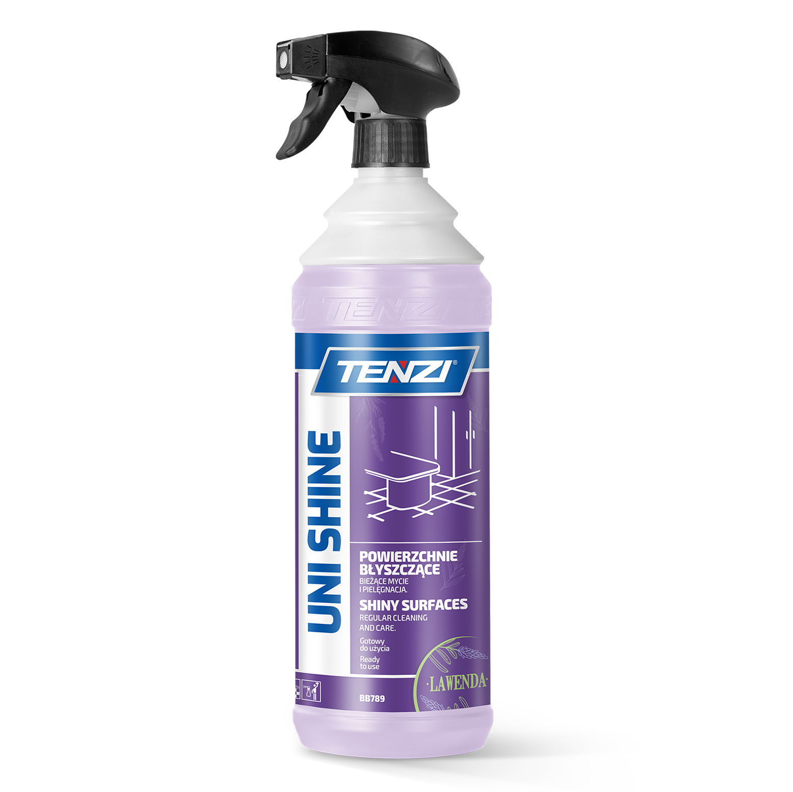 Uni Shine Lawenda to uniwersalny preparat o przyjemnym lawendowym zapachu do mycia i pielęgnacji powierzchni błyszczących w tym lakierowanych, szkliwionych, glazurowanych, także błyszczących. Preparat doskonale myje, pielęgnuje i utrzymuje naturalne właśc