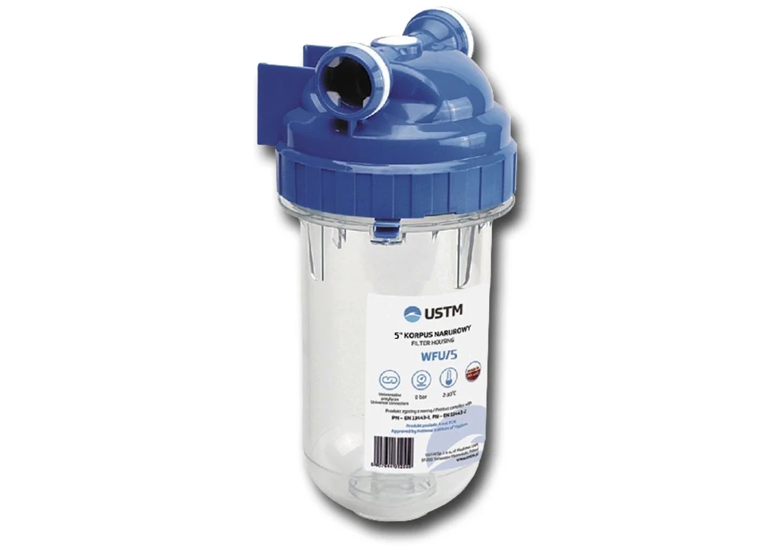 Filtr przeznaczony do instalacji wody zimnej. Prawidłowo działa z wkładami standardu 5 cali UST-M (wyłącznie z serią PS/5, BL/5).