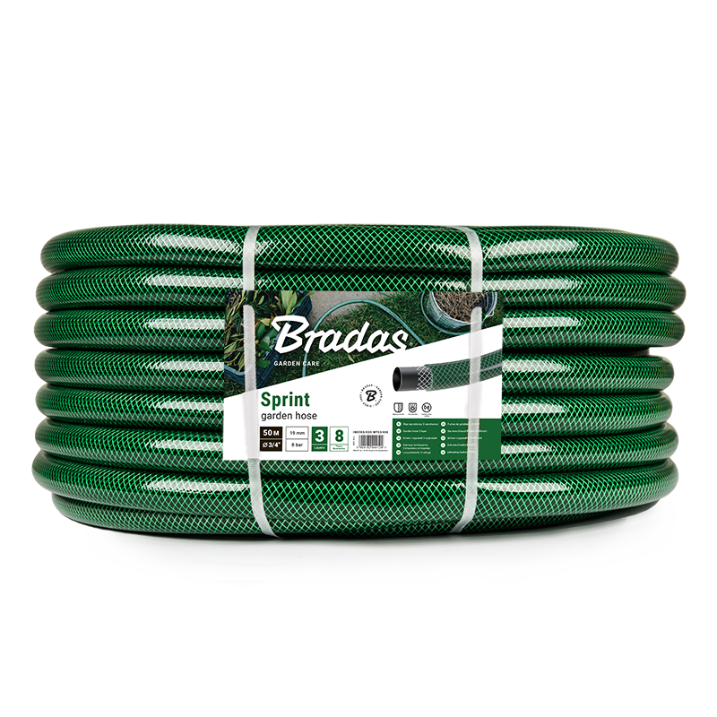 SPRINT wąż ogrodniczy:- 3-warstwowy- zbrojony- wykonany z miękkiego PVCI warstwa - wewnętrzna, z czarnego PVC odporna na UV i osadzanie się glonów w wężuII warstwa - oplot krzyżowy z włókna syntetycznegoIII warstwa - zewnętrzna, zielona transparentna z miękkiego PVC