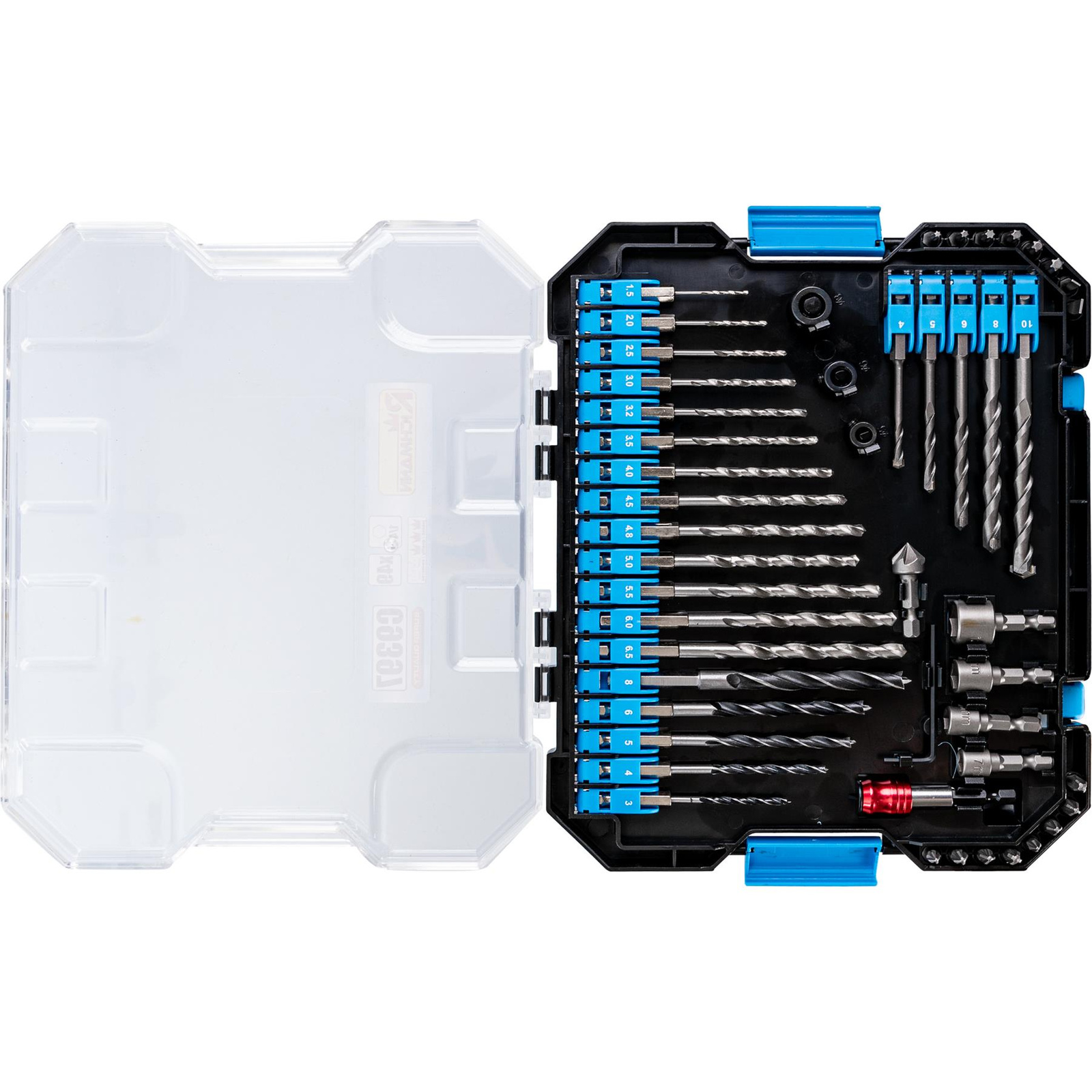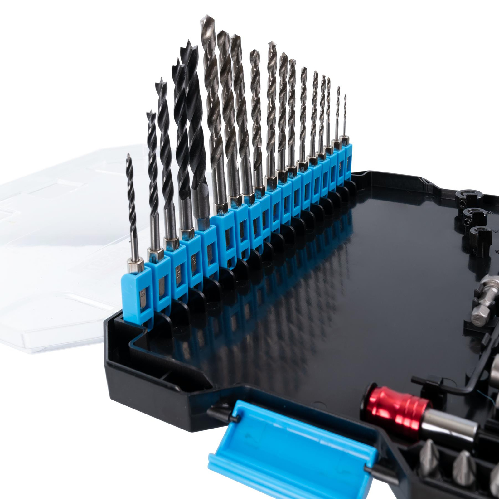 wiertła do metalu (13 szt.) [mm]: 1.5, 2.0, 2.5, 3.0, 3.2, 3.5, 4.0, 4.5, 4.8, 5.0, 5.5, 6.0, 6.5
