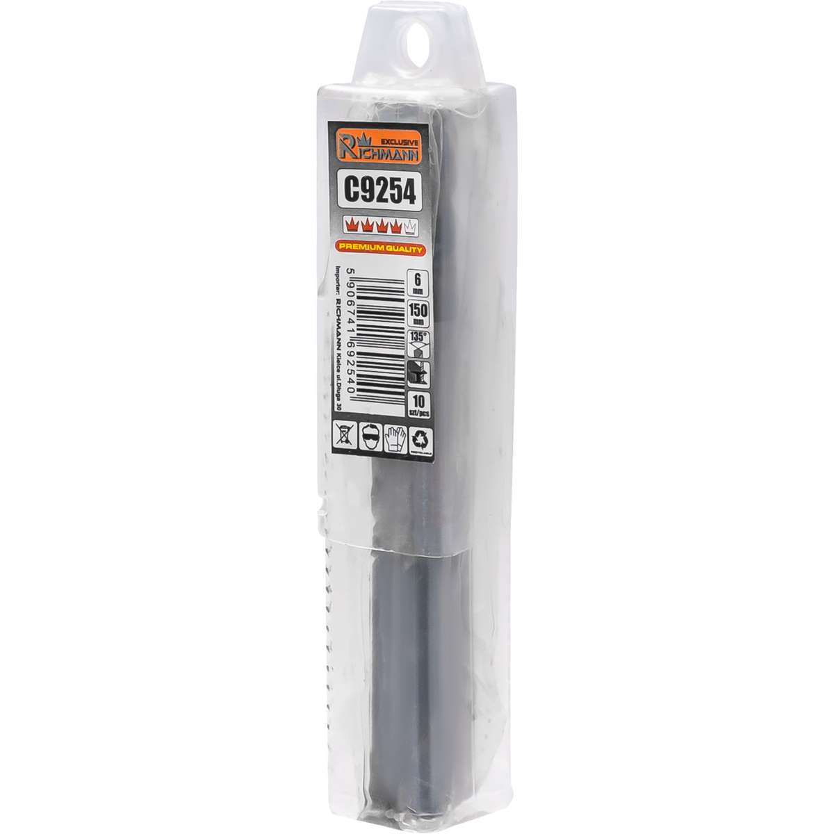 Zestaw 10 sztuk wierteł do metalu o średnicy 6 mm i długości 150 mm.