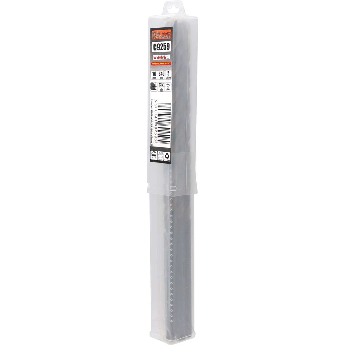 Zestaw 5 sztuk wierteł do metalu o średnicy 10 mm i długości 340 mm.
