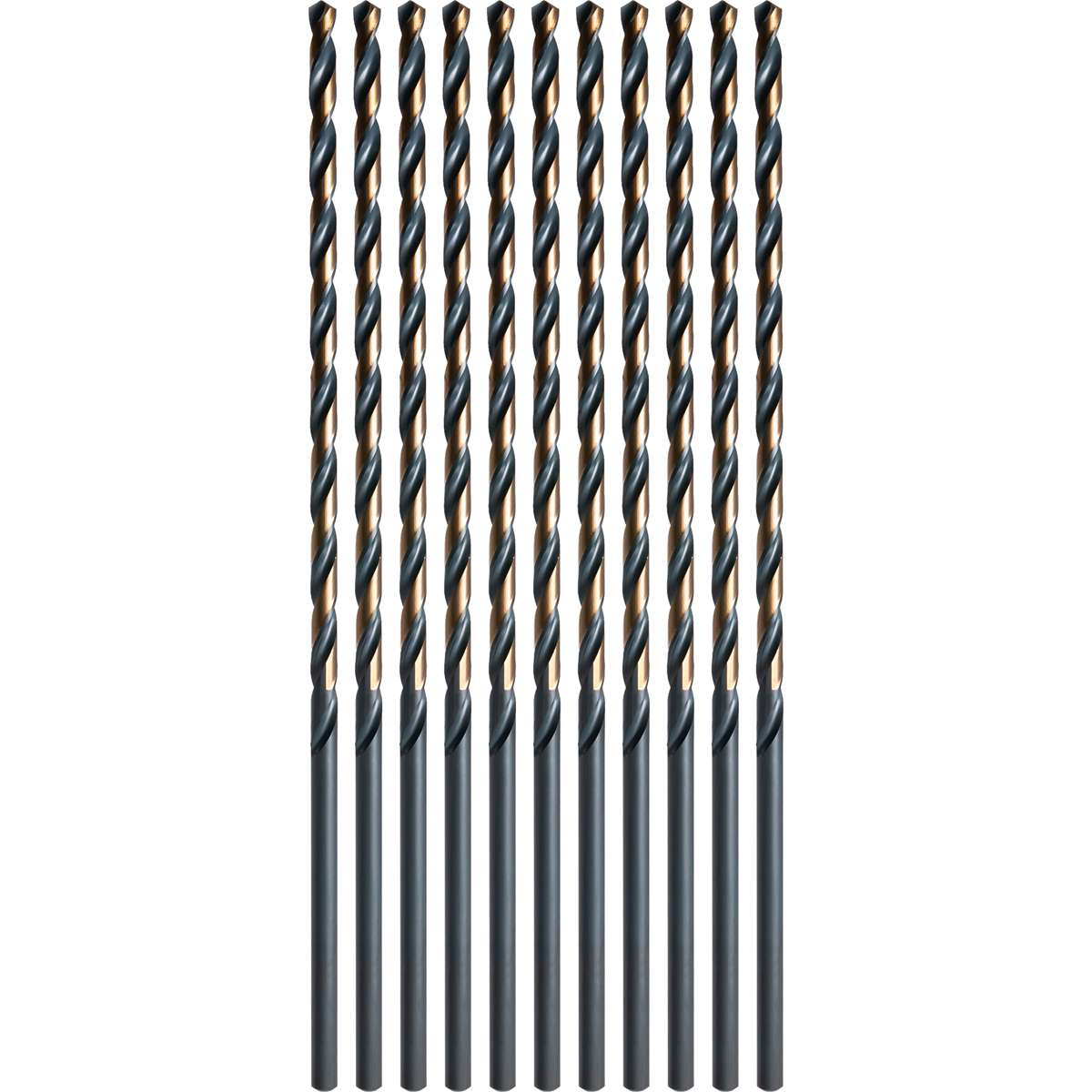 Zestaw 10 sztuk wierteł do metalu o średnicy 4 mm i długości 220 mm.