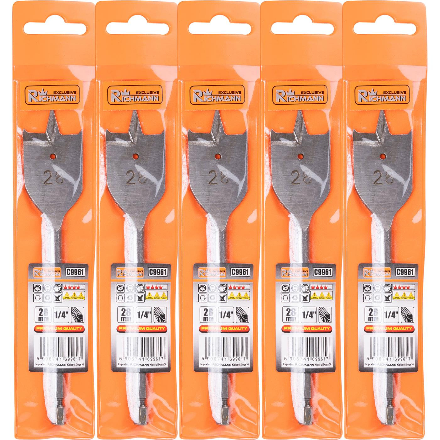Wiertło łopatkowe do drewna 1/4” w rozmiarze 28 mm.