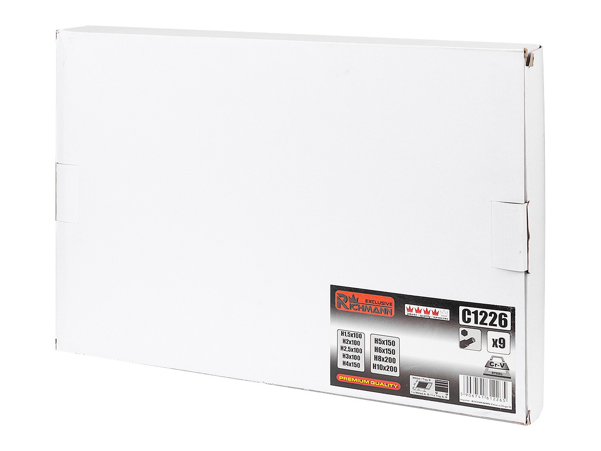 Zestaw zawiera rozmiary [mm]: H1½x100, H2x100, H2½x100, H3x100, H4x150, H5x150, H6x150, H8x200, H10x200