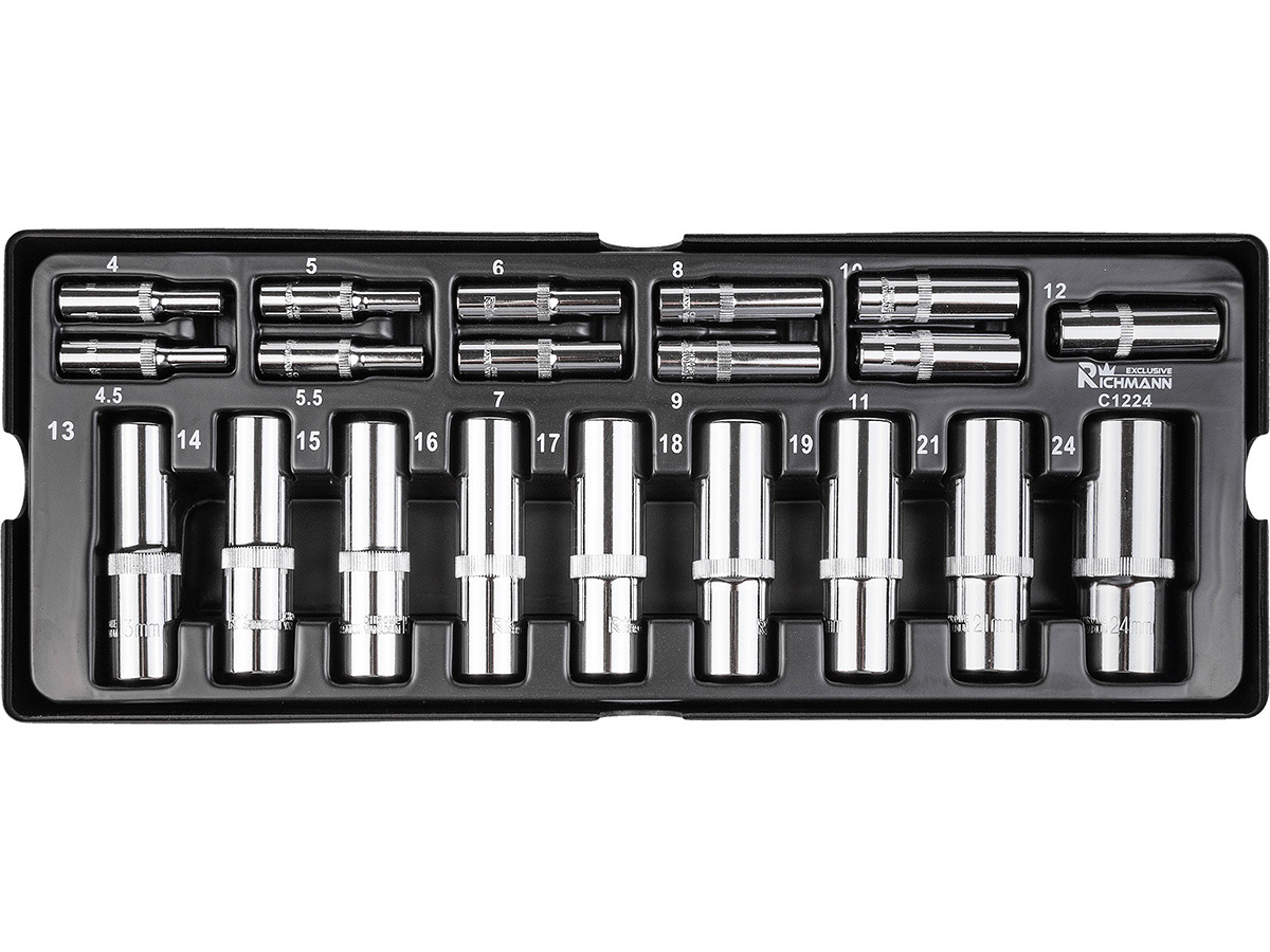 WKŁAD - NASADKI DŁUGIE 1/4', 1/2' 4-24 MM 20 ELEM. (TACKA C1101 W ZESTAWIE)