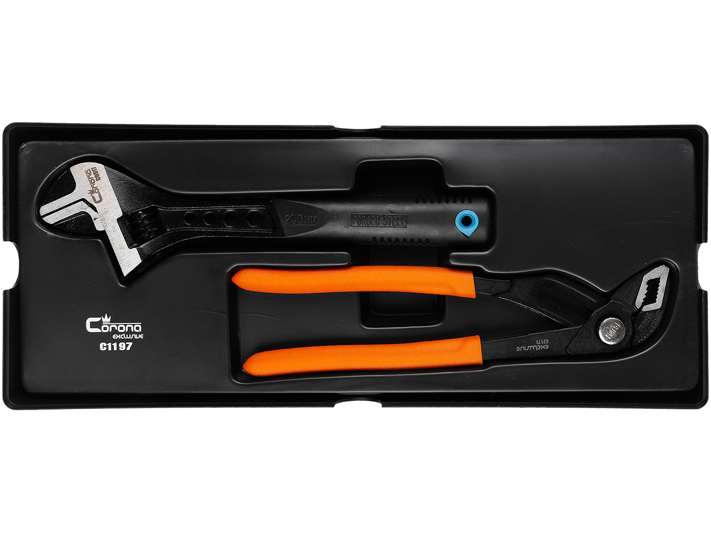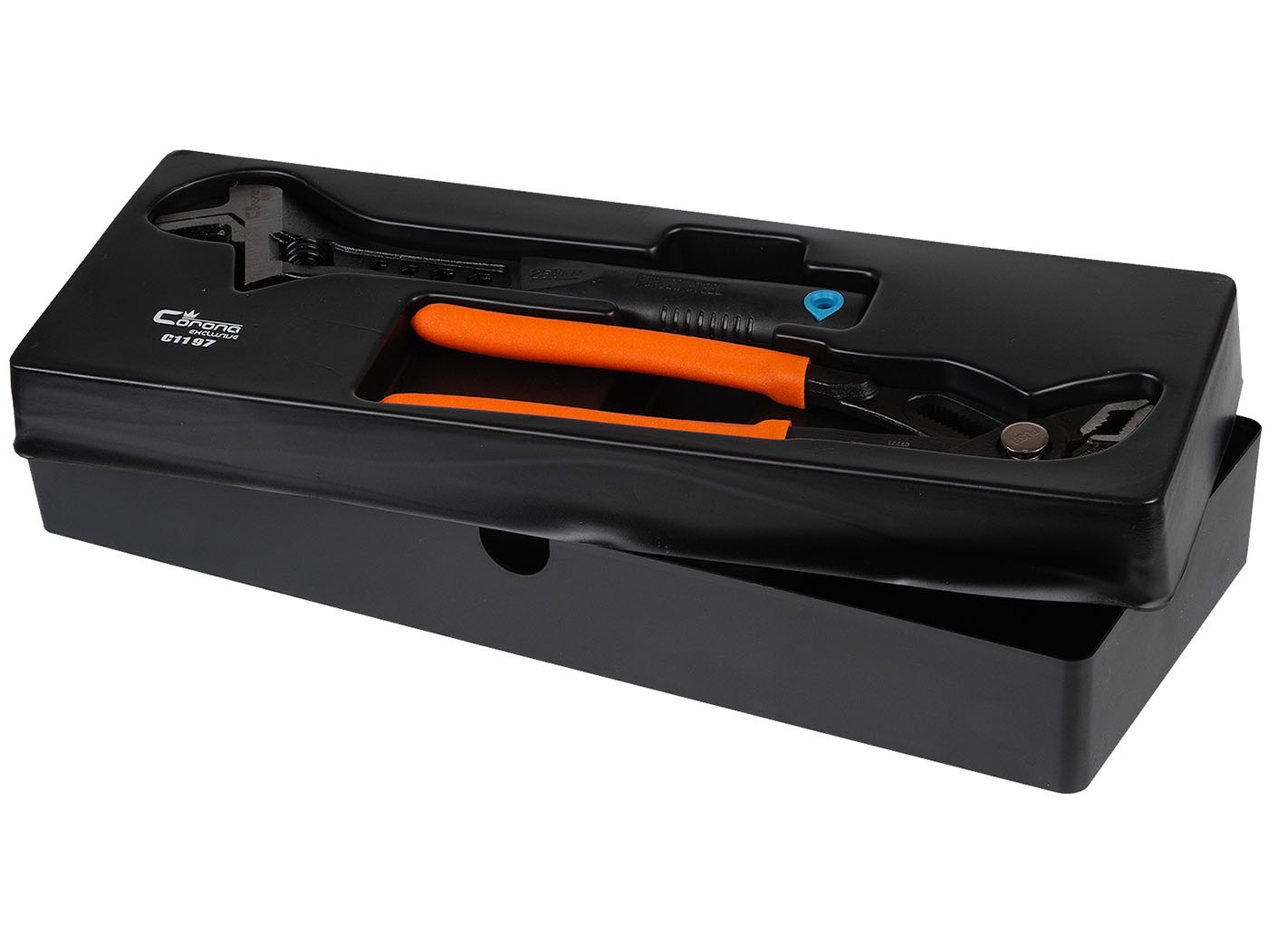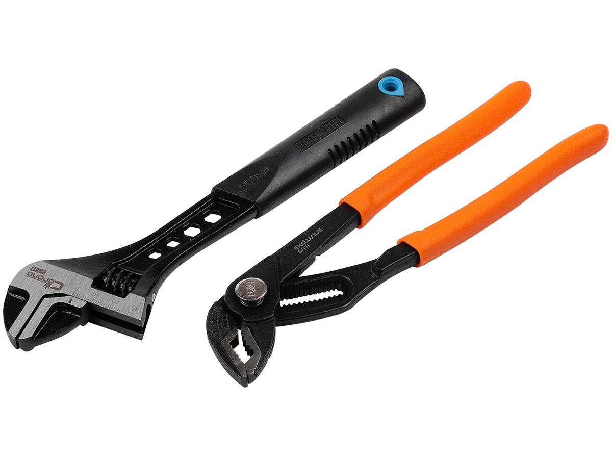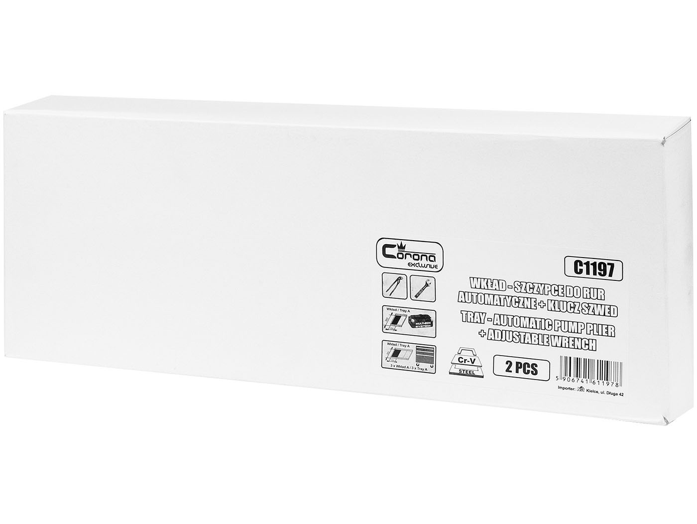 W skład zestawu wchodzą: klucz do rur oraz szczypce nastawne.