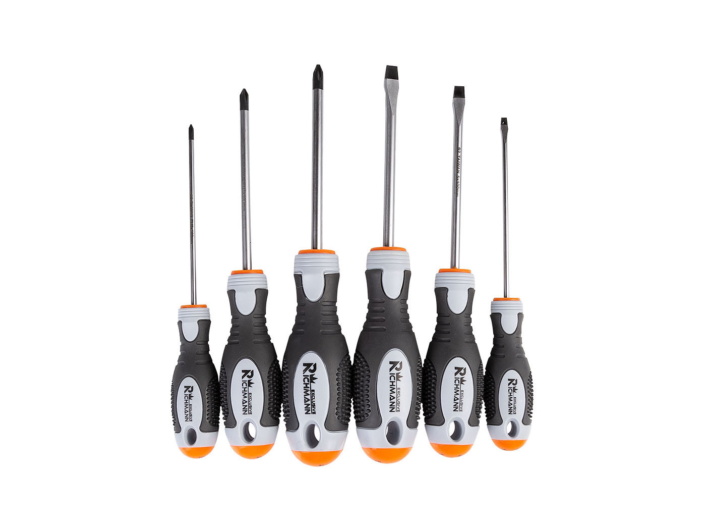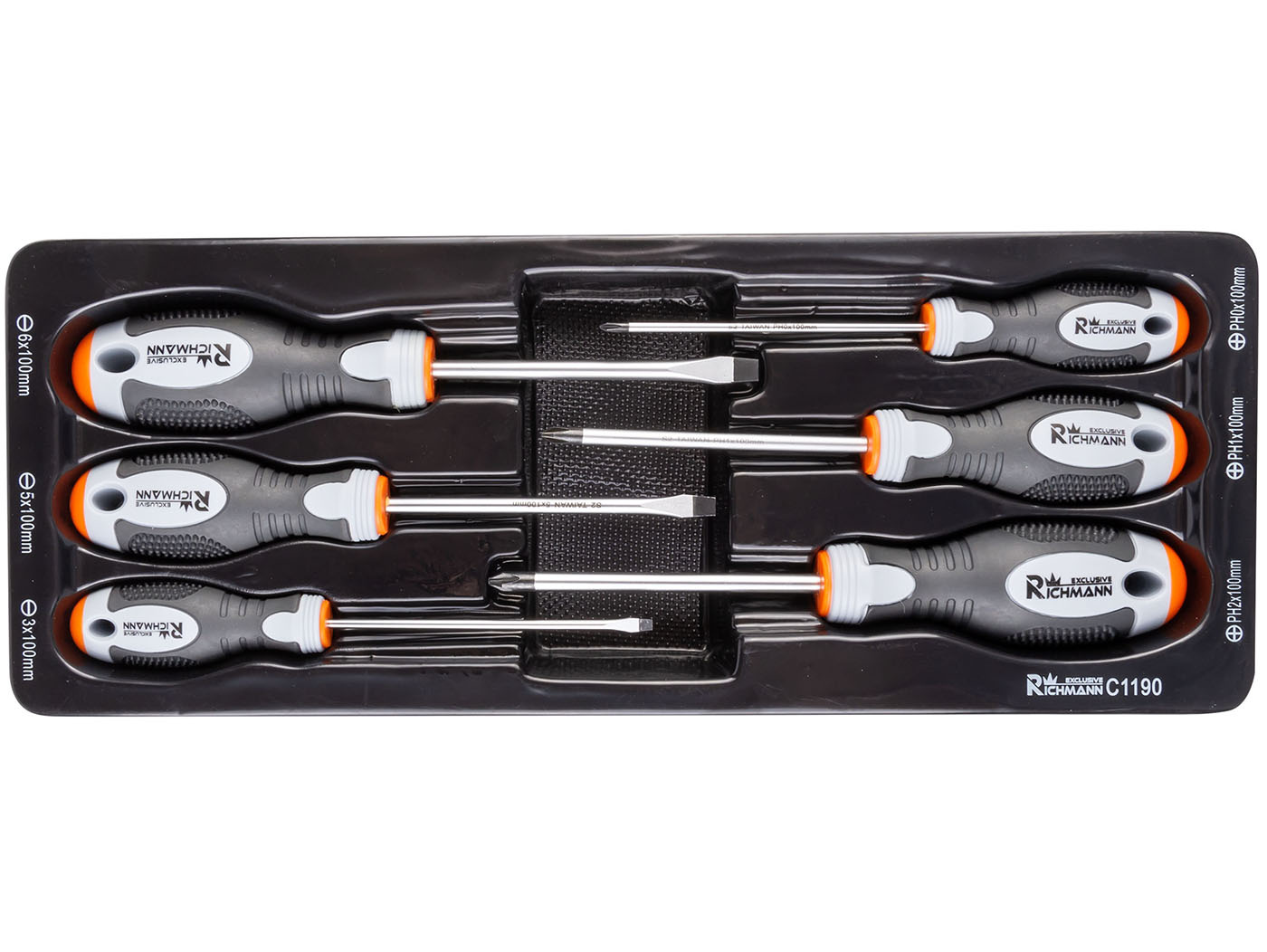 Zestaw 6 sztuk wkrętaków umieszczony we wkładzie do wózka warsztatowego typu A.