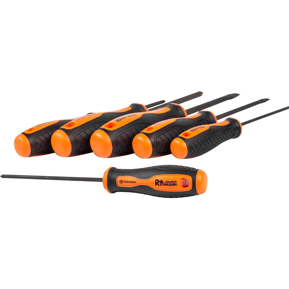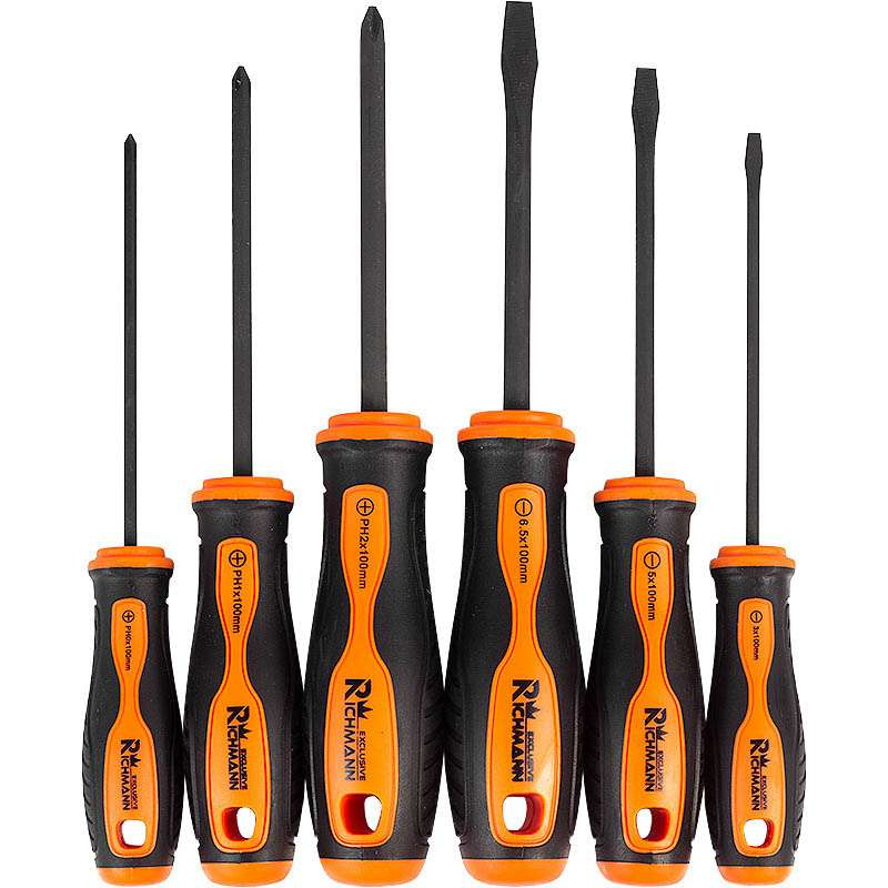 Zestaw zawiera 6 sztuk wkrętaków płaskich oraz krzyżakowych.