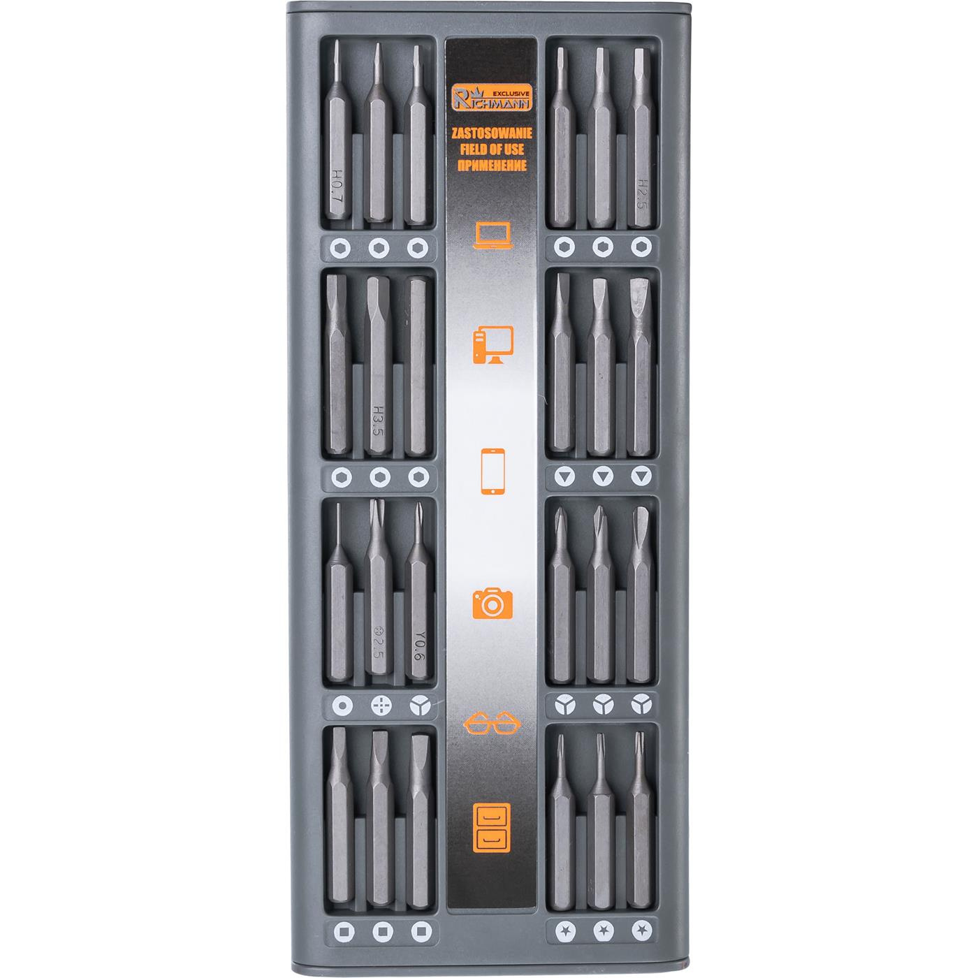 W zestawie znajduję się 48 bitów, które sprawdzą się w wielu pracach serwisowych oraz przy elektronice.