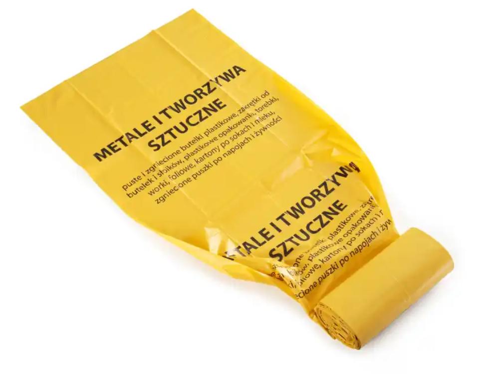 ➡️ Funkcjonalne worki na odpady z folii LDPE, przeznaczone do selektywnej zbiórki tworzyw sztucznych i metali.