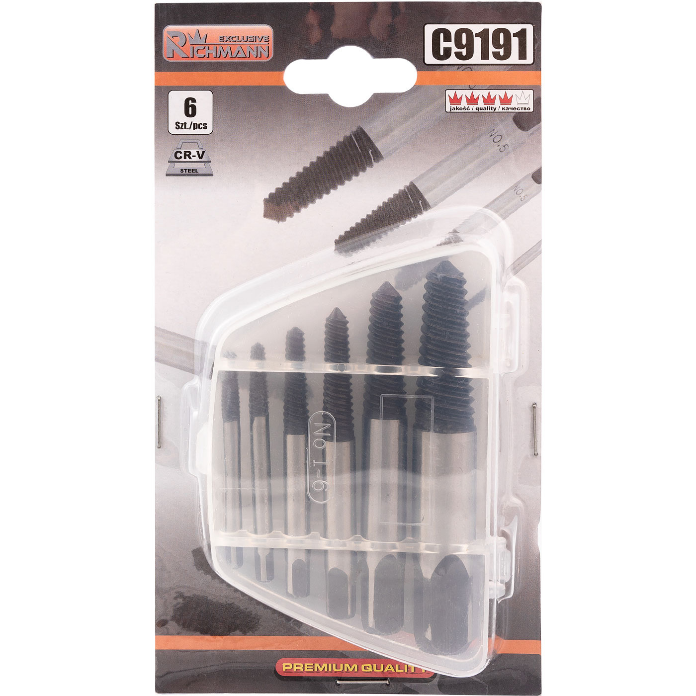 Zestaw 6 szt. wykrętaków do urwanych śrub w zakresie rozmiarów M3 - M25.