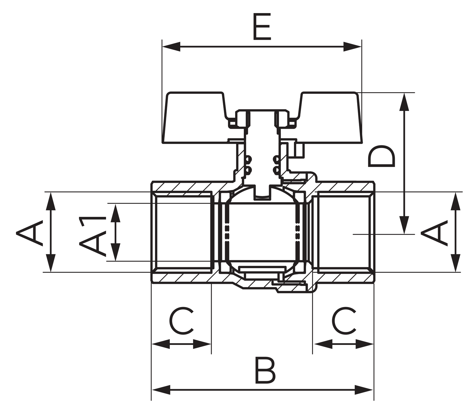 Zawór kulowy gazowy z motylkiem GW-GW 1-2" typ G61