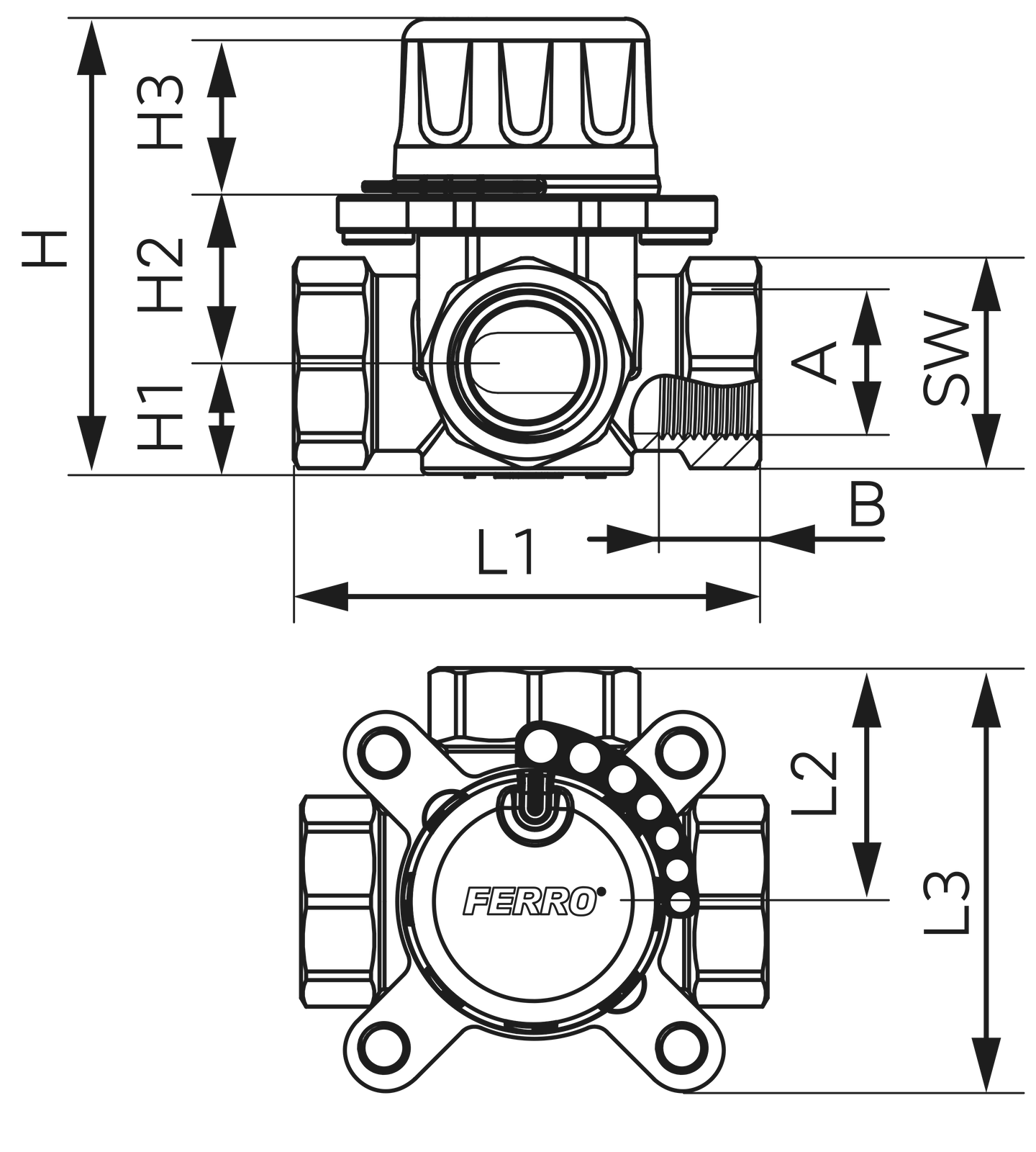 Zawór mieszający 3-drogowy 1 1/2" gwinty wewnętrzne