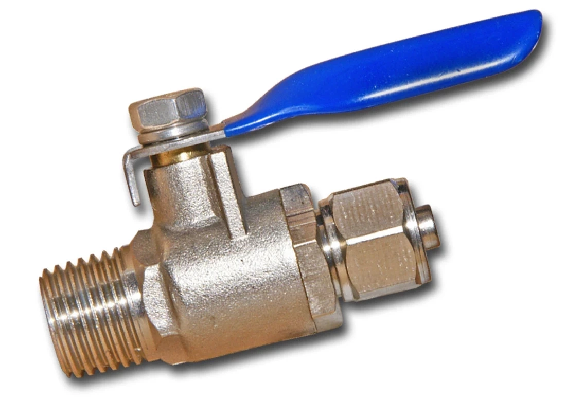 Metalowy zawór kulowy, standardowo wkręcany do przyłącza wody od filtra. Stosowany w celu doprowadzenia niezależnego zasilania wodą, zamontowanego filtra wodnego (np. filtra odwróconej osmozy, filtrów przepływowych itd).