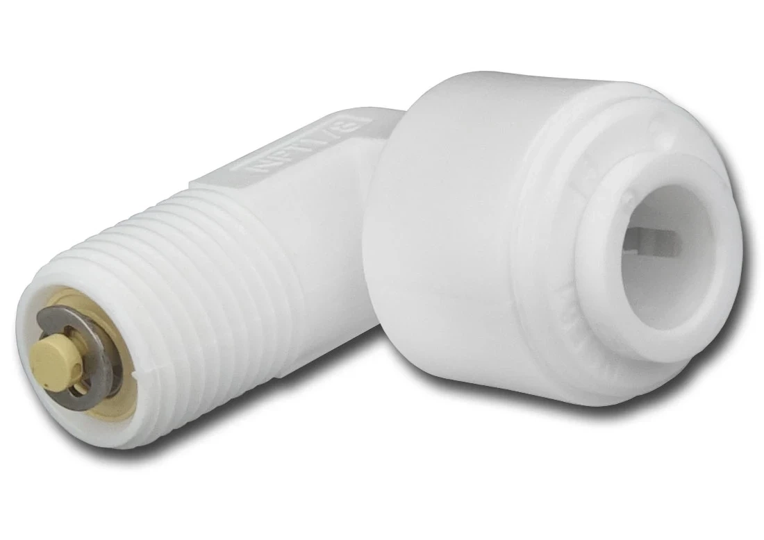 Kolanko typu szybkozłączka z zabudowanym zaworem zwrotnym (jednokierunkowym). Standardowo instalowany w obudowach membran osmotycznych, w filtrach ze zbiornikiem przeponowym.