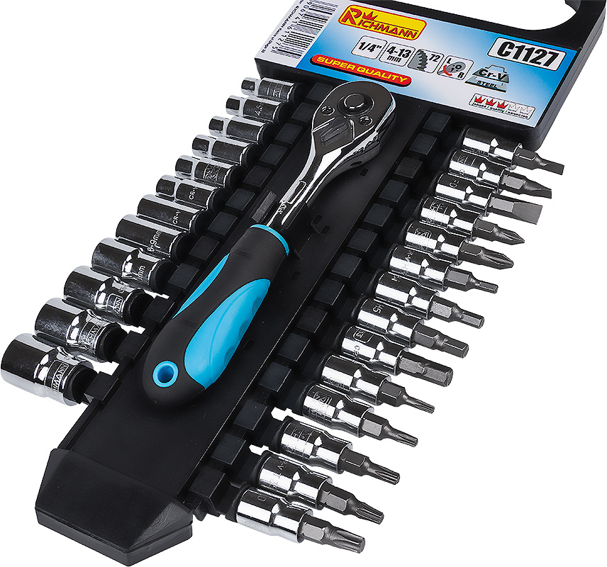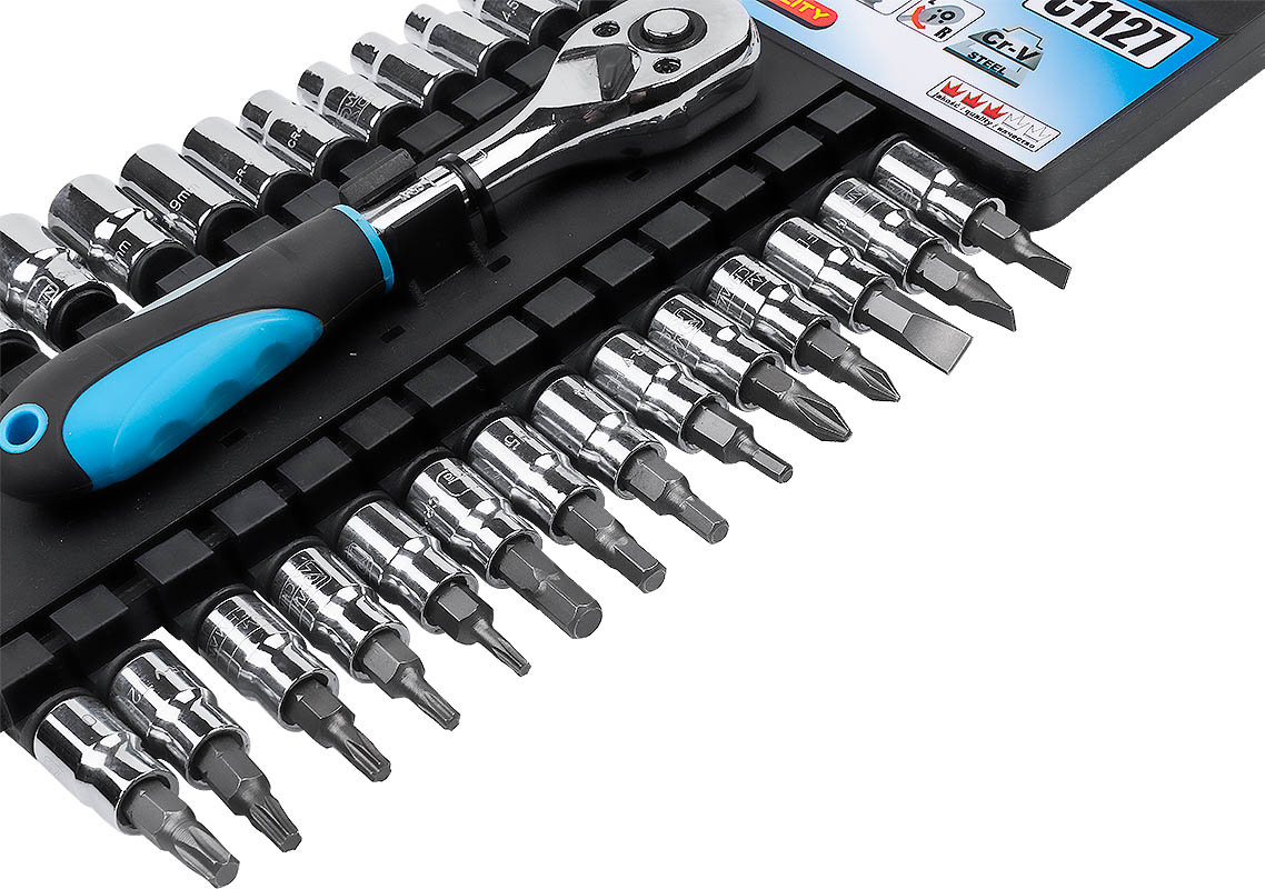 Zestaw 27 sztuk nasadek z grzechotką ¼”.