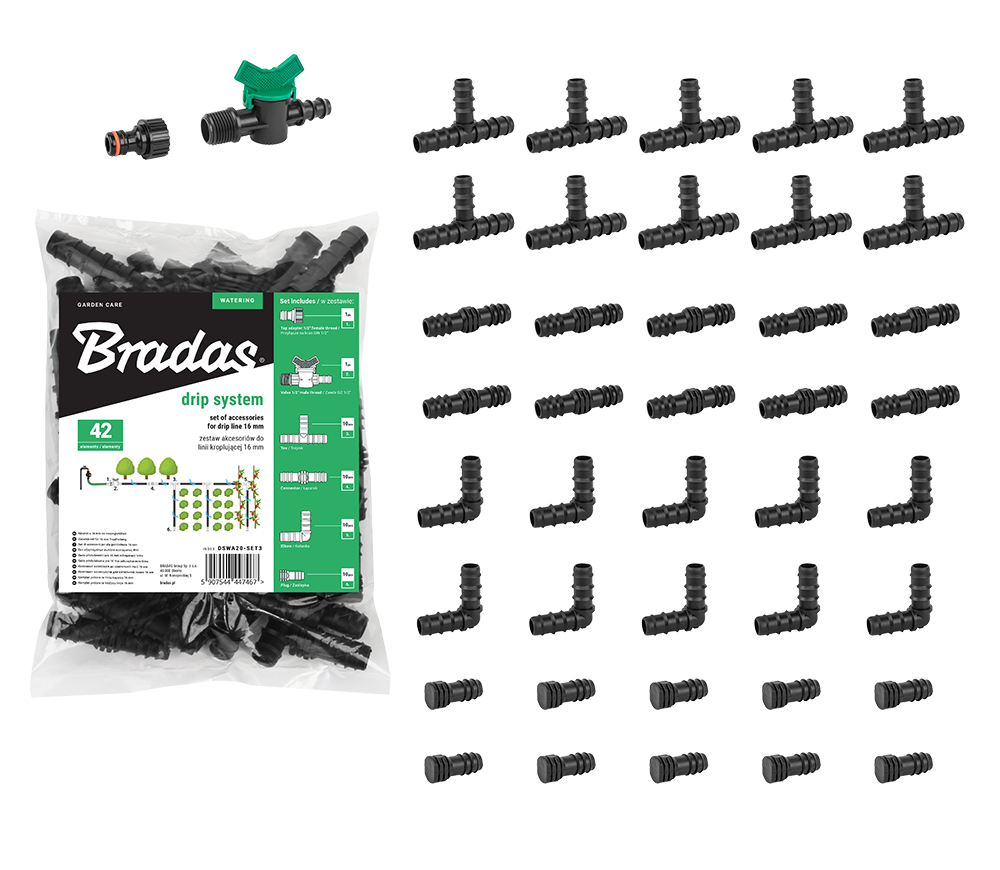 Zestaw akcesoriów do linii kroplującej 16mm - 42 szt.