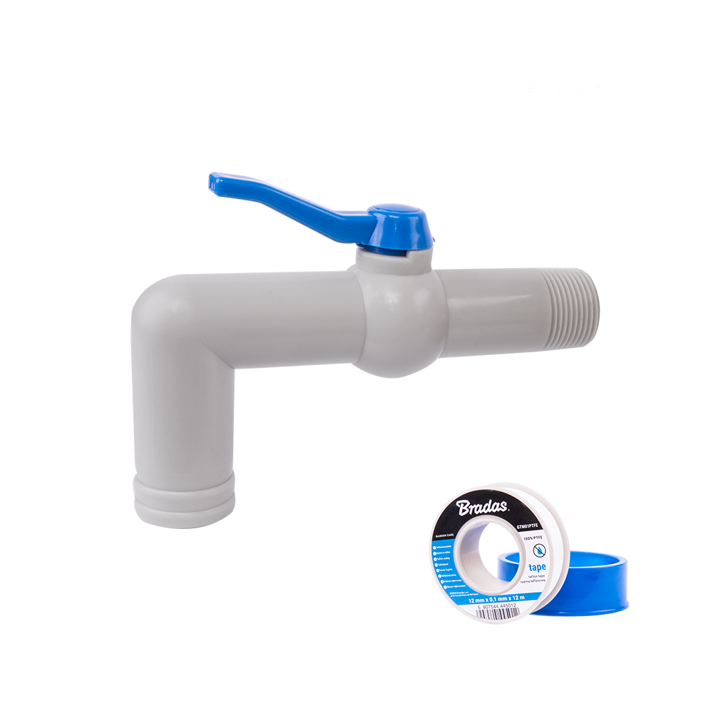 Zestaw - Kran 90° 1'' na wąż 32mm, dł. 18cm, z taśmą PTFE