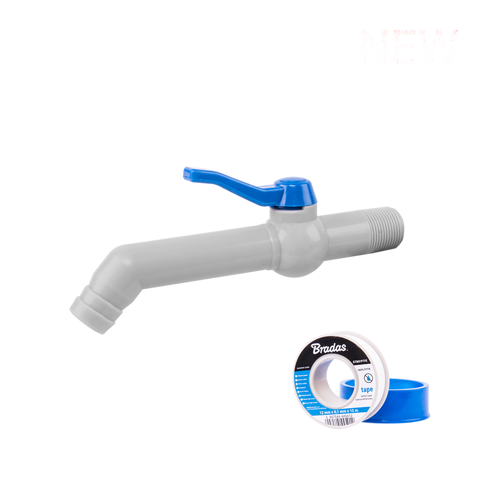 Zestaw - Kran PP 45° 3/4'' na wąż 25mm, dł. 19cm, z taśmą PTFE