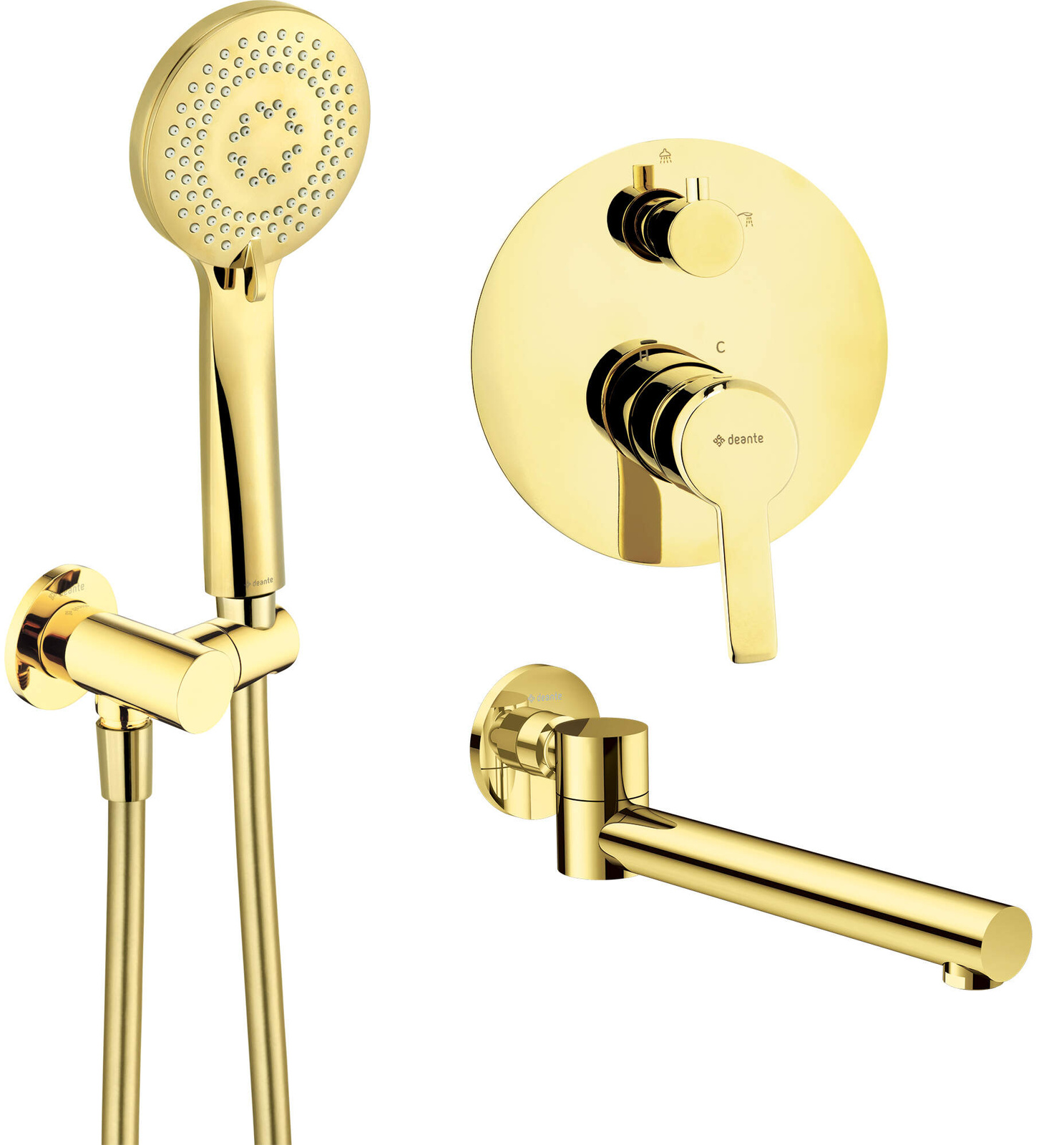 Zestaw prysznicowy podtynkowy z wylewką wannową składana złoty Arnika NAC Z9QA