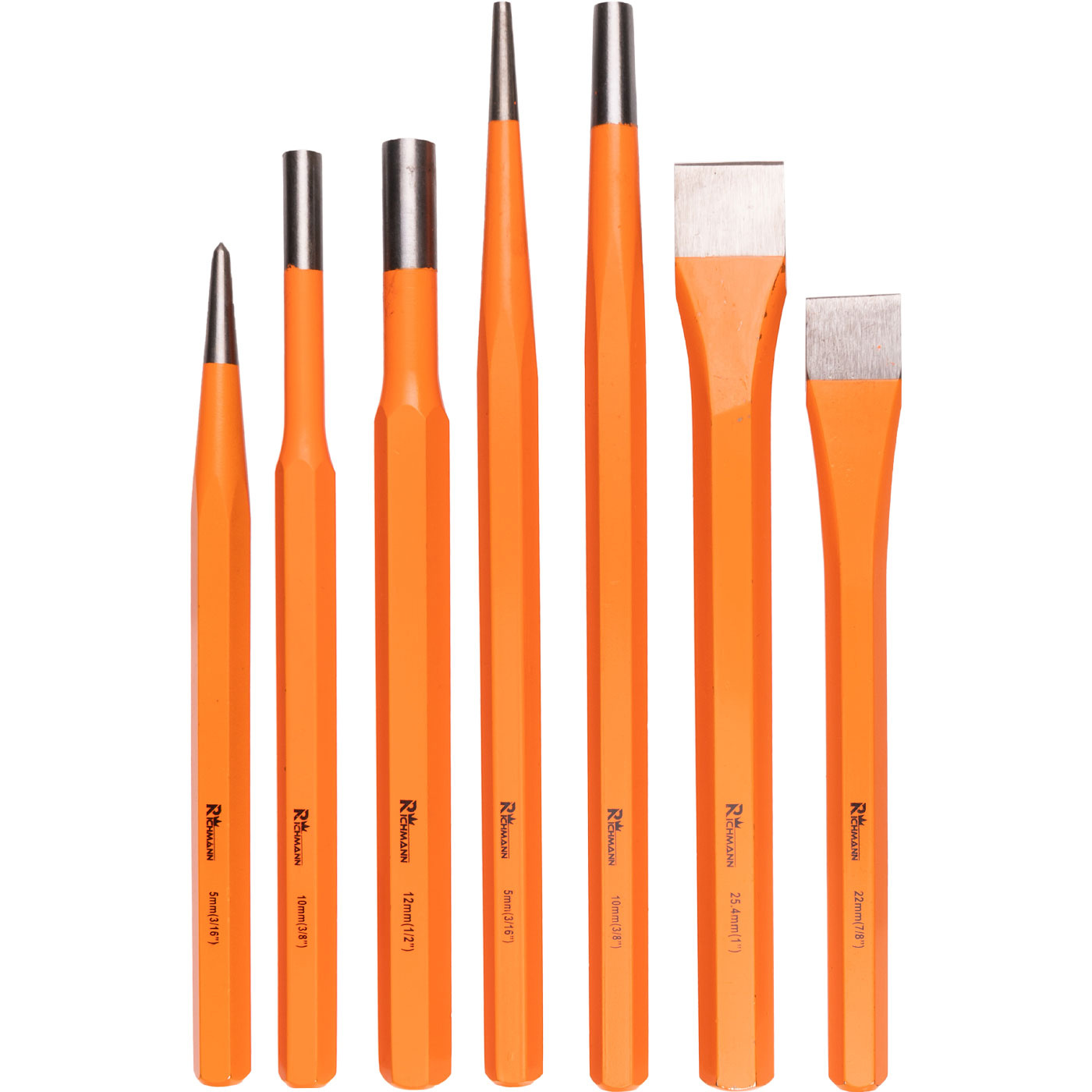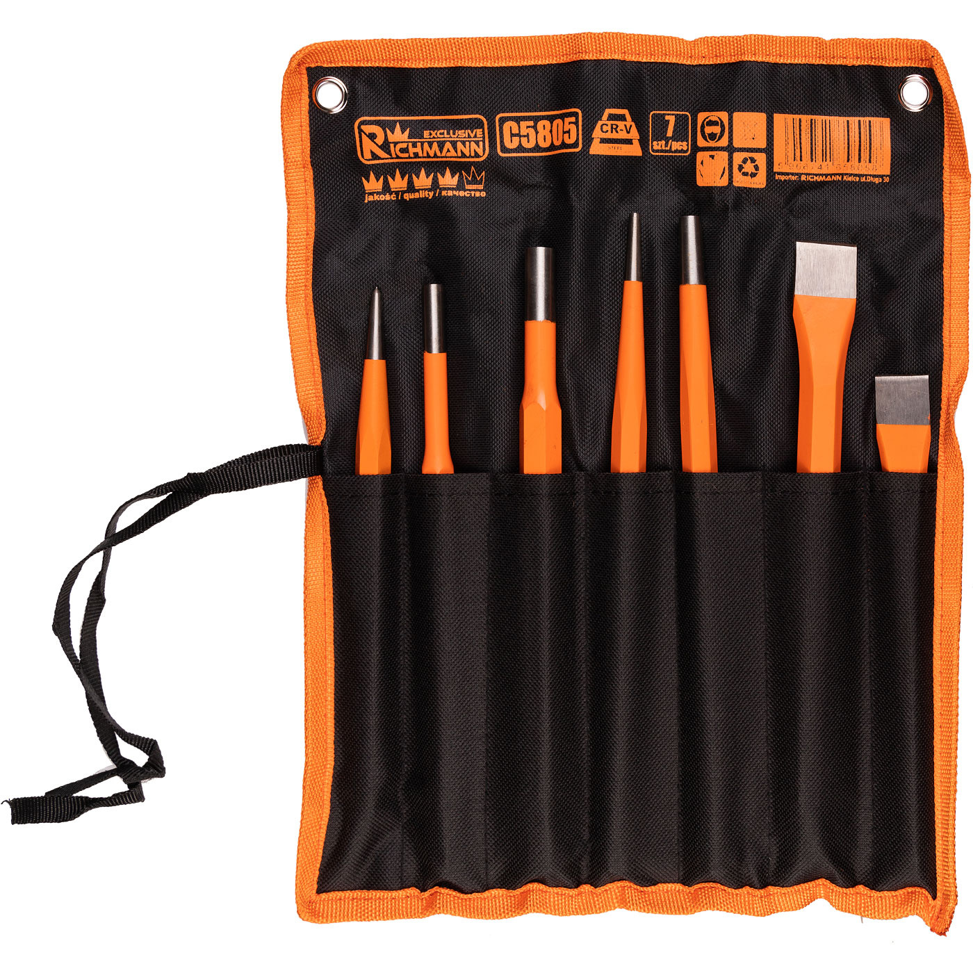 Zestaw 7-elementowy składający się z wybijaków, przecinaków i punktaków.