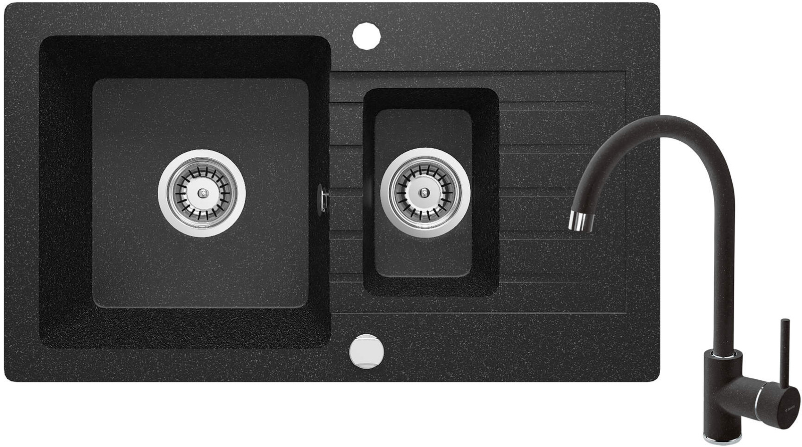 Zlewozmywak granitowy z baterią 1.5-komorowy z ociekaczem obrotowa grafit, chrom grafit Zorba ZQZA2513