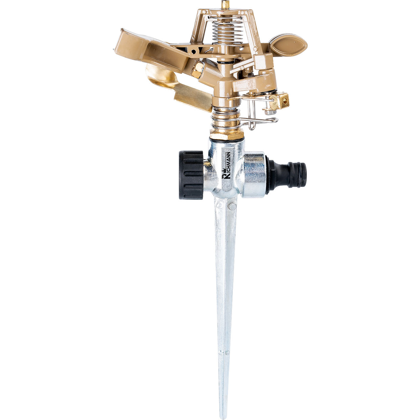 Zraszacz ogrodowy pulsacyjny wbijany na kolcu, metalowy.