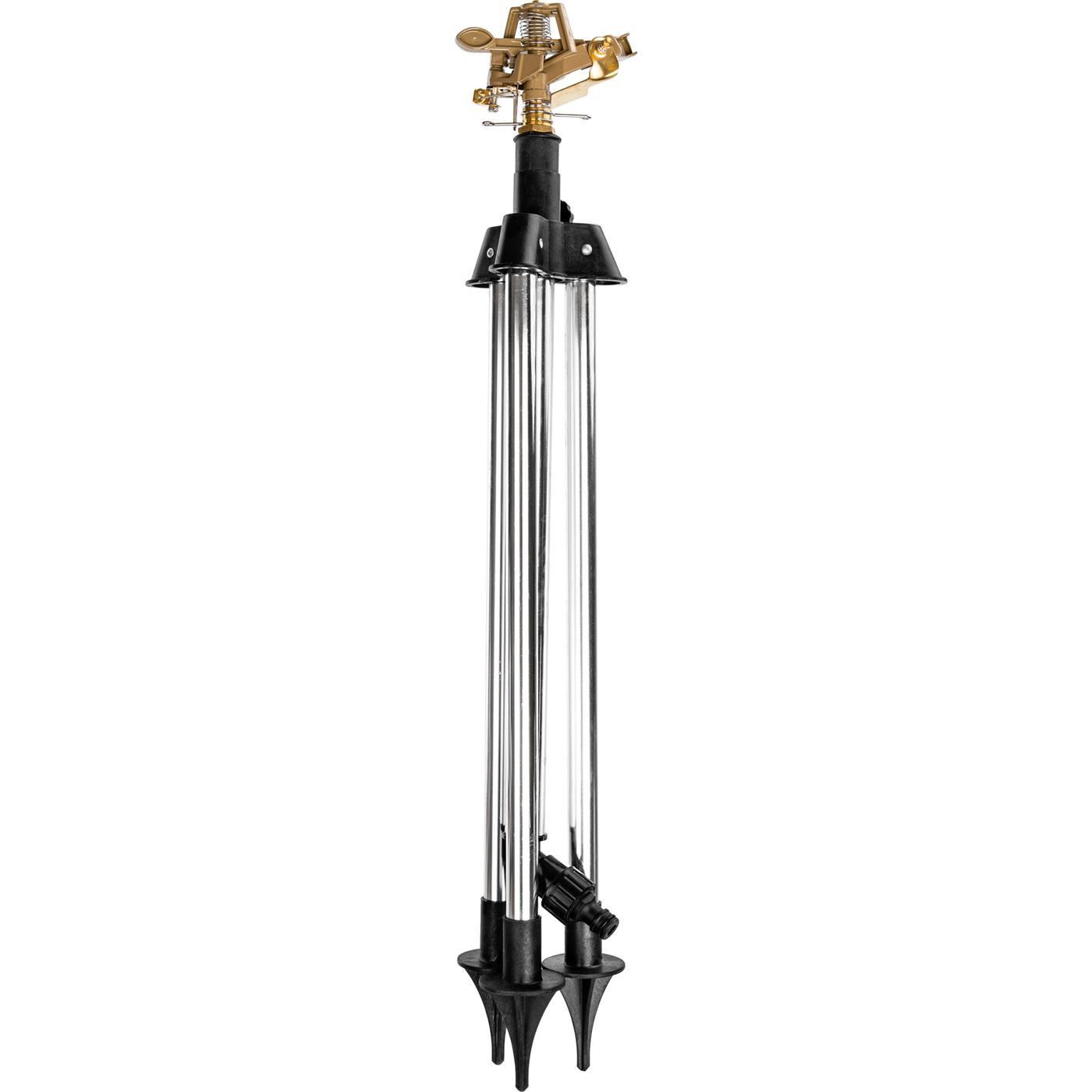 Zraszacz ogrodowy pulsacyjny metalowy na statywie aluminiowym.