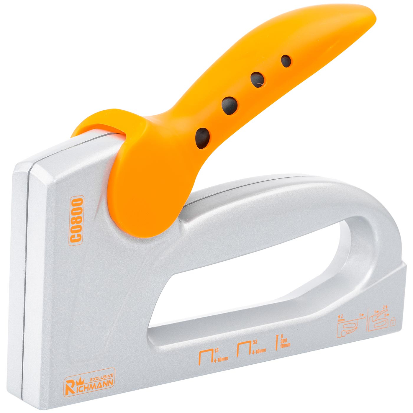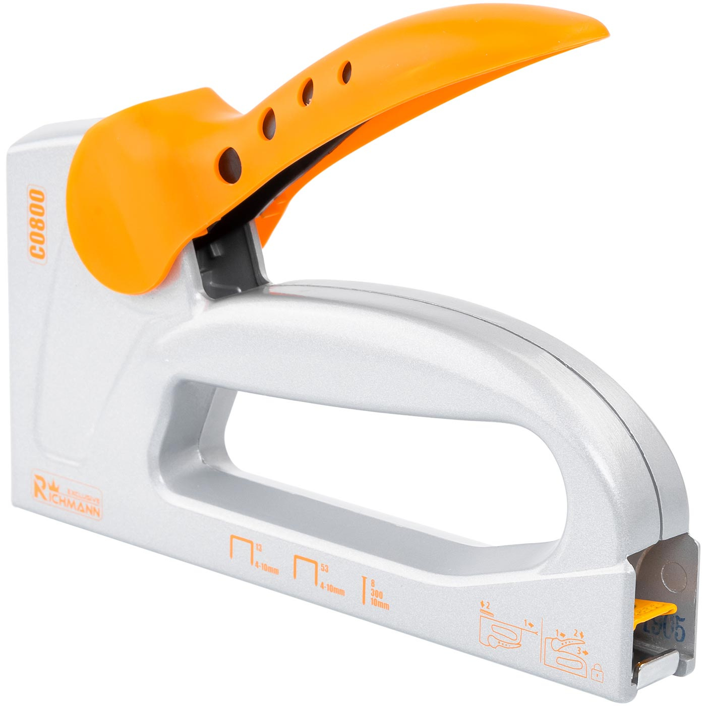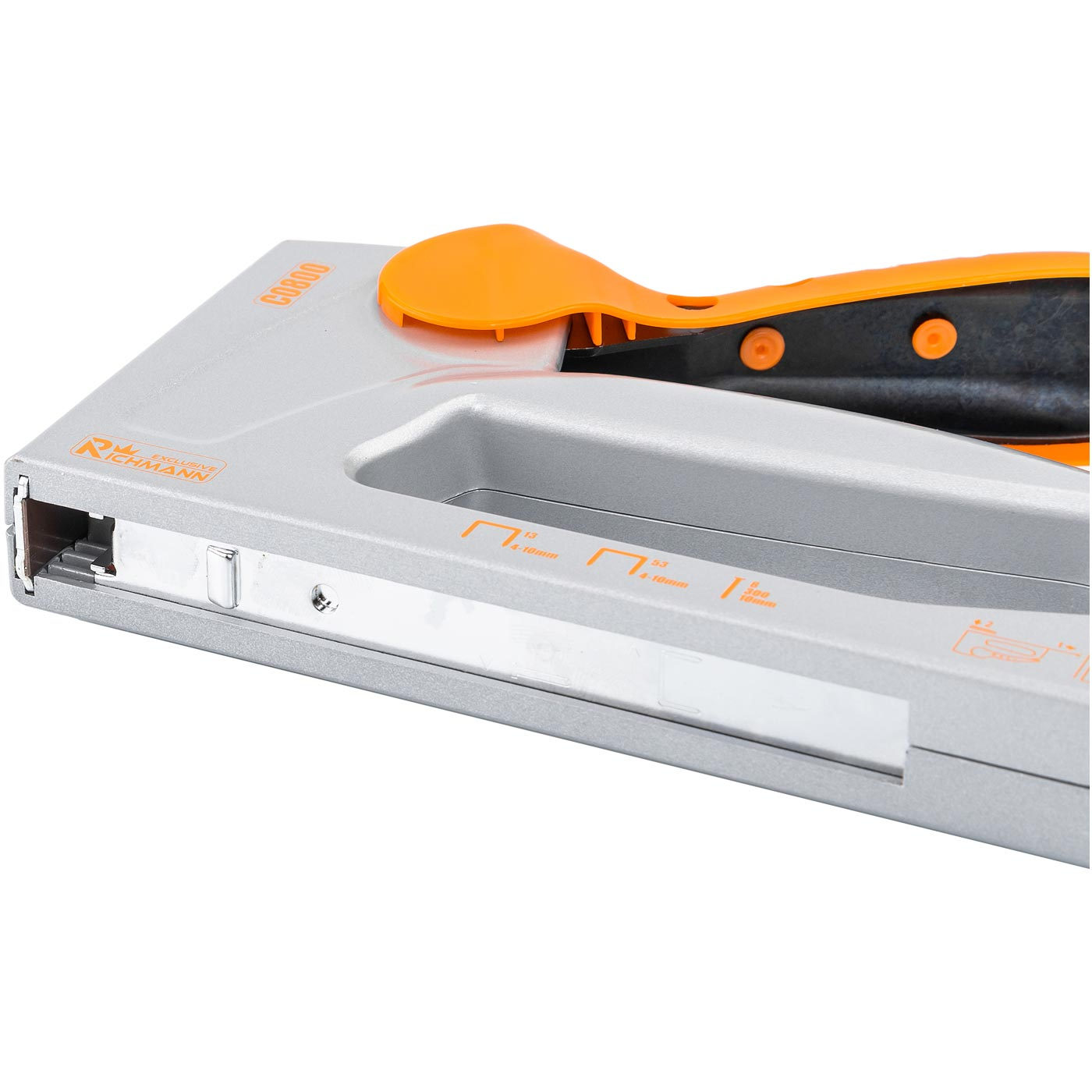 Umożliwia zastosowanie zszywek TYP: 13/53 w rozmiarach: 4 - 10 mm oraz T- gwoździ w TYP: 8/300 w rozmiarach do 10 mm.
